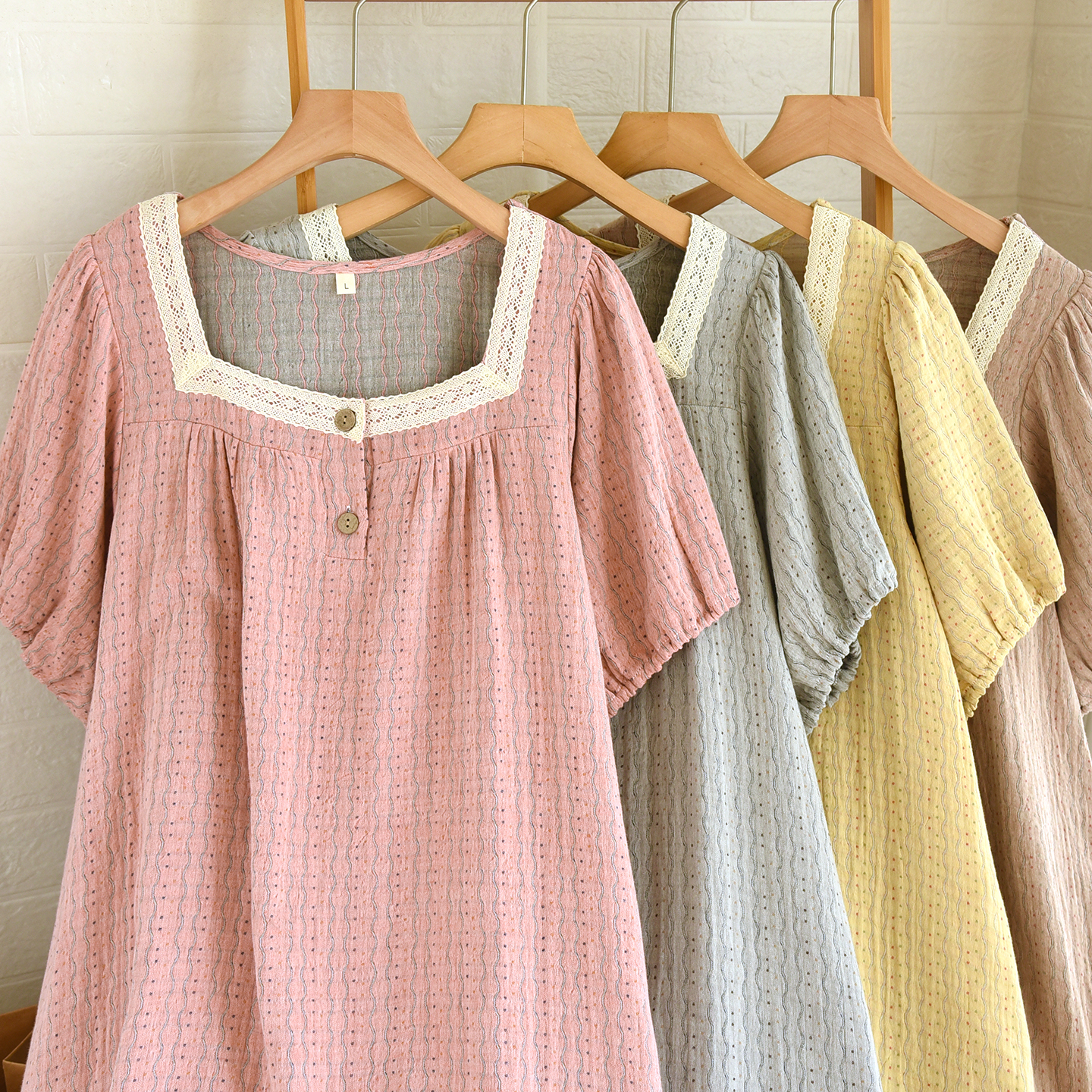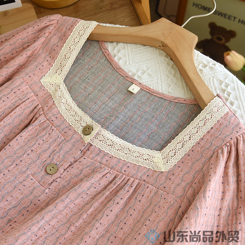 新款纯棉纱布睡裙女夏季薄款提花日系甜美蕾丝公主风家居裙可外穿