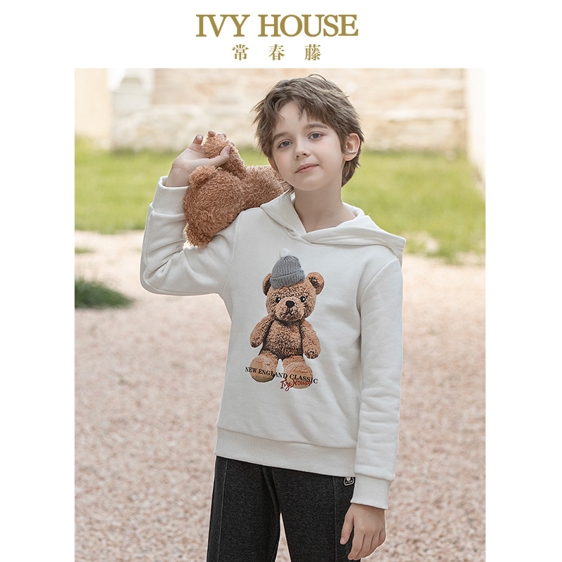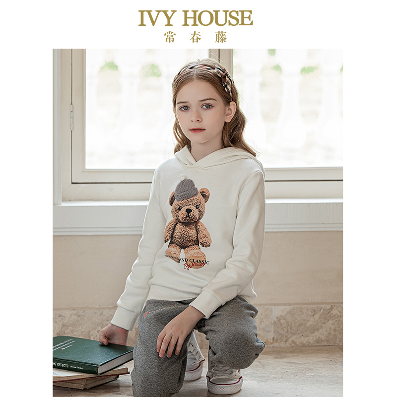IVY HOUSE常春藤儿童装男童女童秋款 印花小熊连帽针织卫衣亲子装