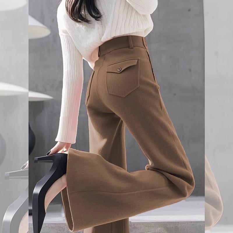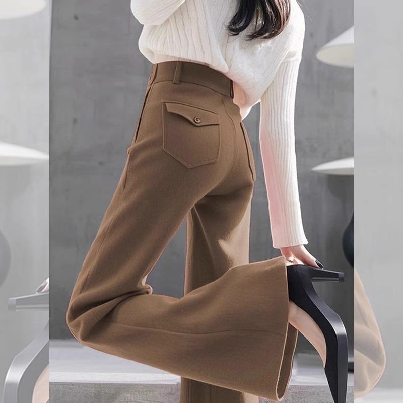 今年流行高级感气质通勤高腰显瘦棕色微喇阔腿裤子女2025春季新款
