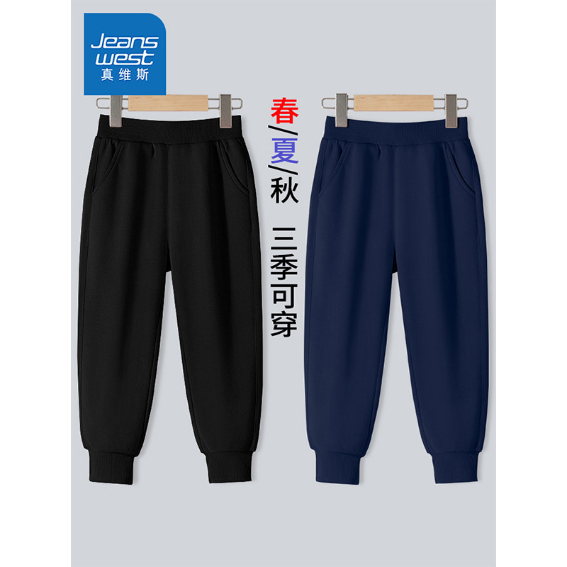 真维斯童装男童裤子春秋款儿童藏蓝色纯色校服长裤女童秋季运动裤