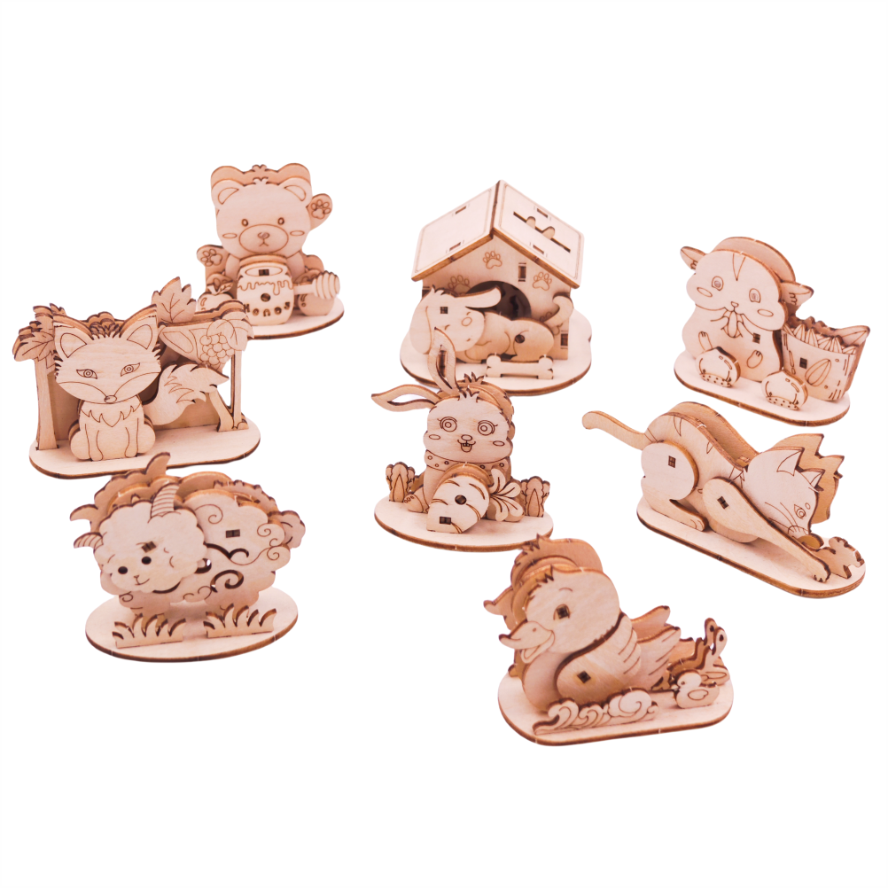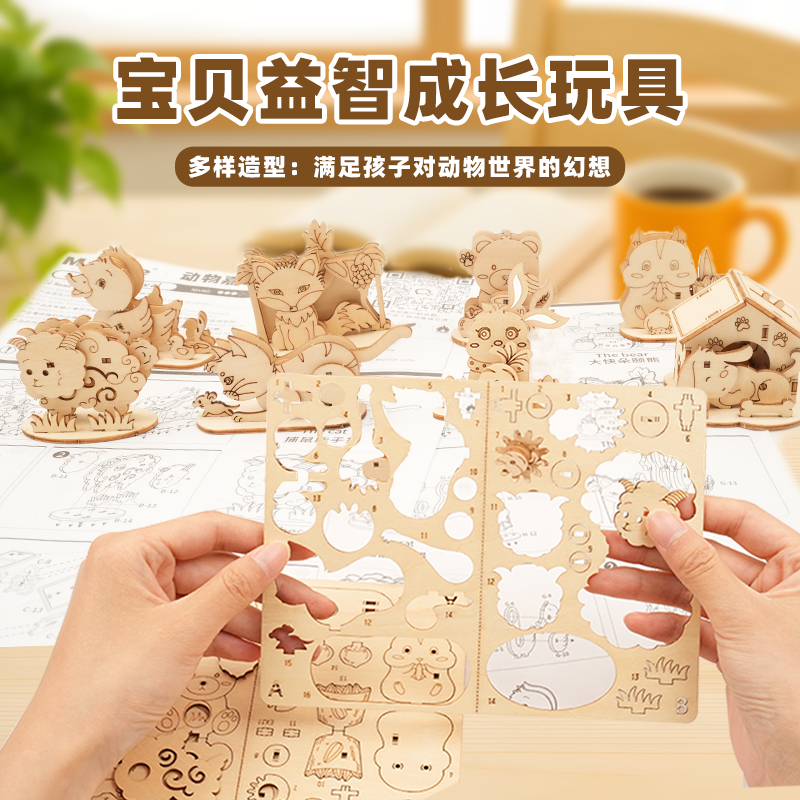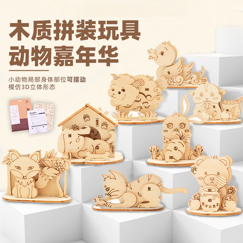 3d立体拼图木质拼装模型小动物摆件孩子益智玩具纯手工拼装礼物