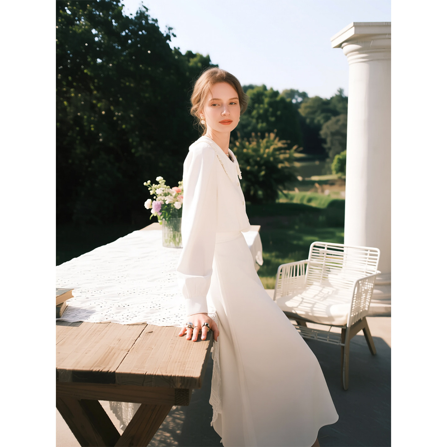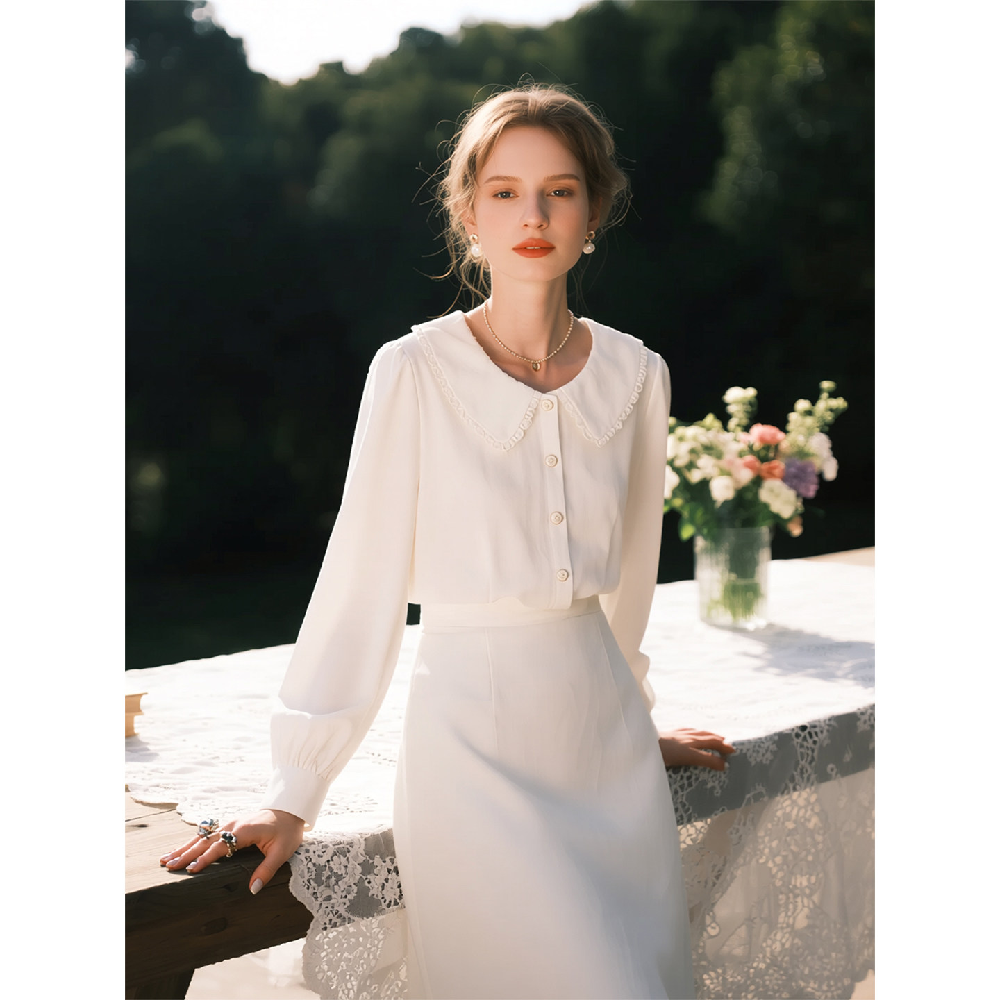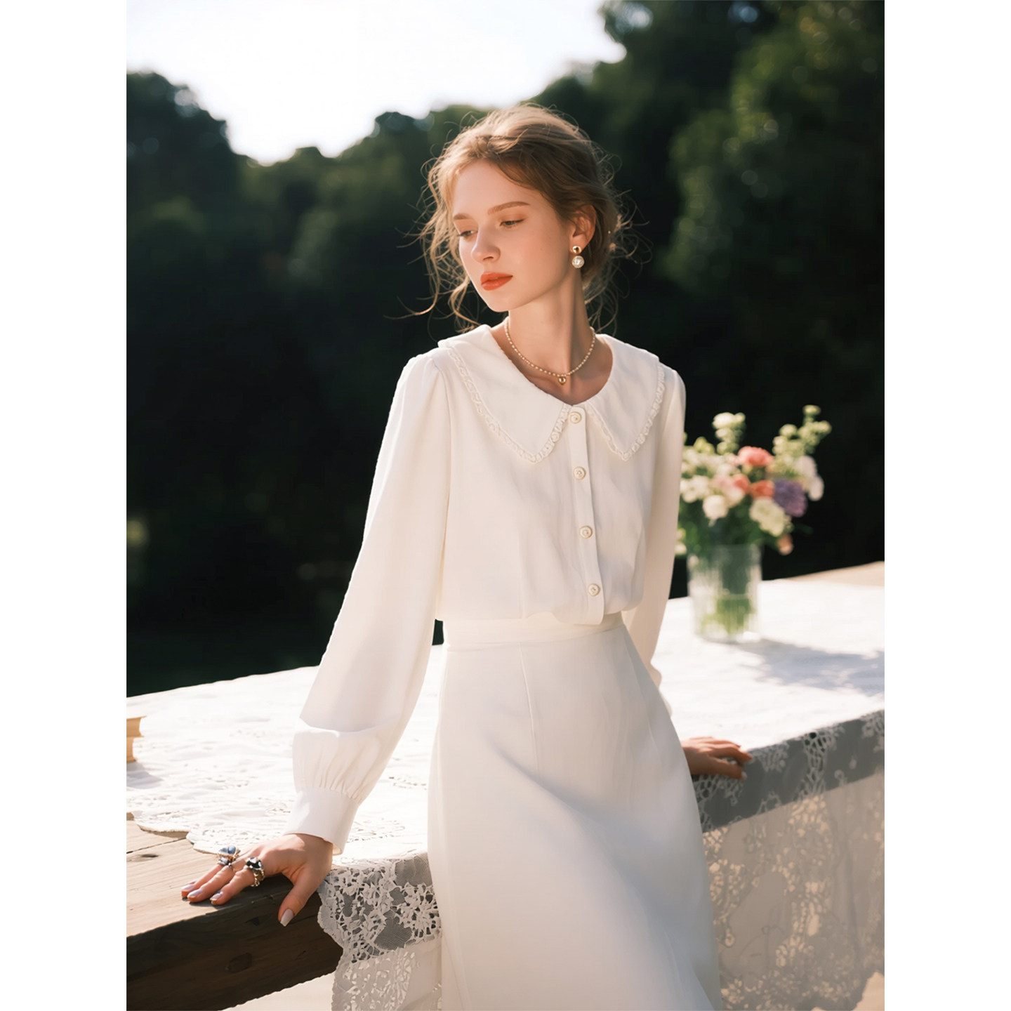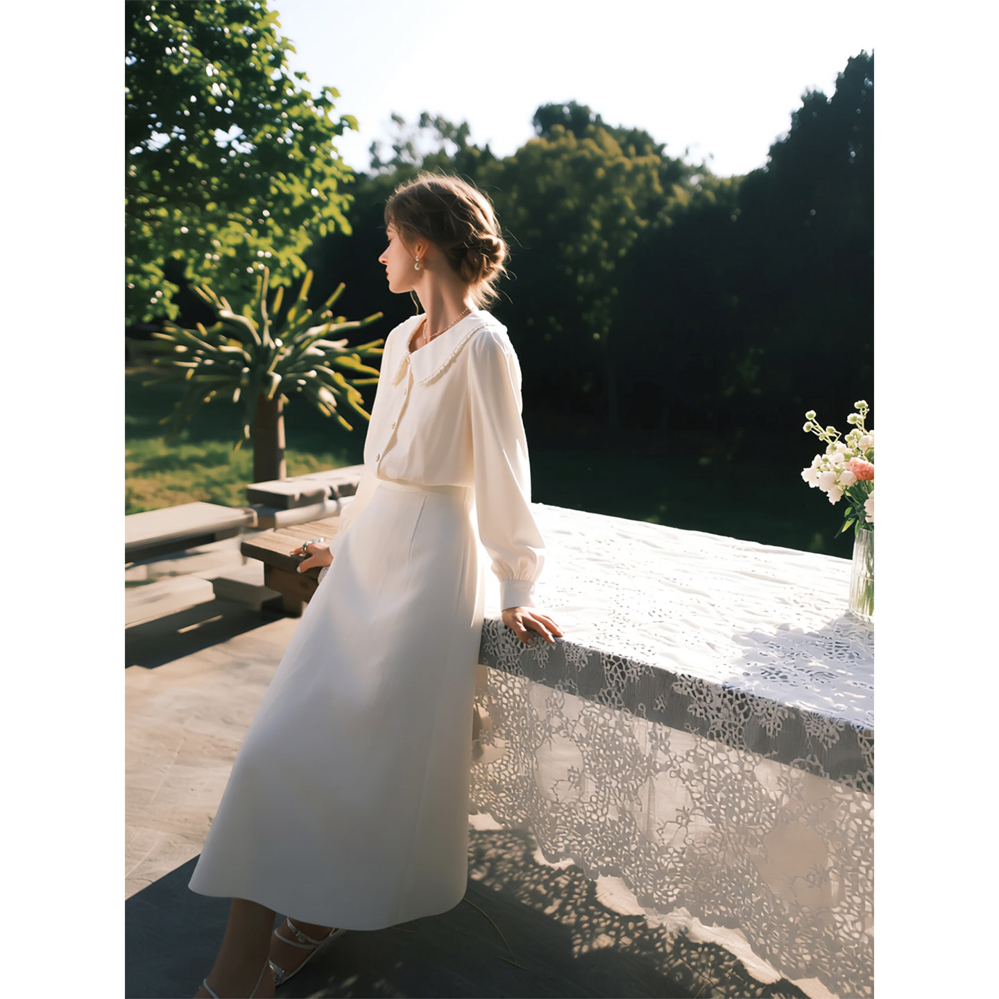 白色娃娃领衬衫半身裙套装女2026年春季新款法式温柔优雅风两件套