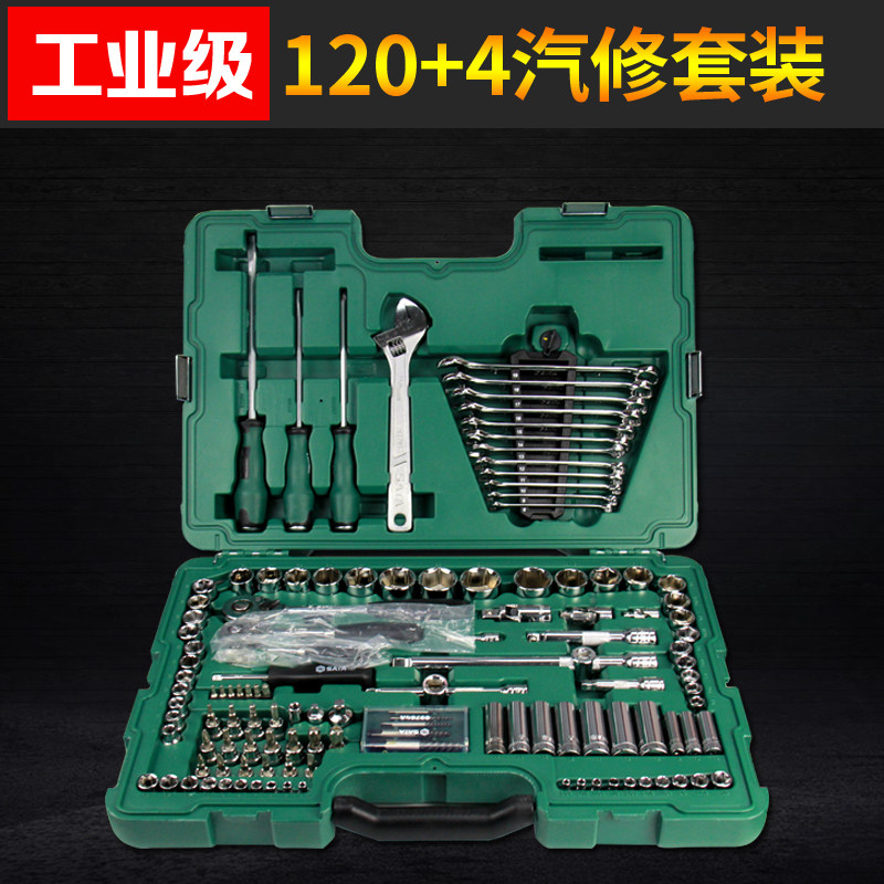 世达120/124件套汽车维修工具套筒棘轮扳手修理英制组合套装09014