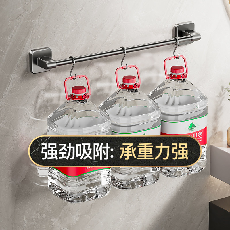 卫生间毛巾架浴室免打孔置物架毛巾单杆厕所挂架吸盘厨房阳台上墙