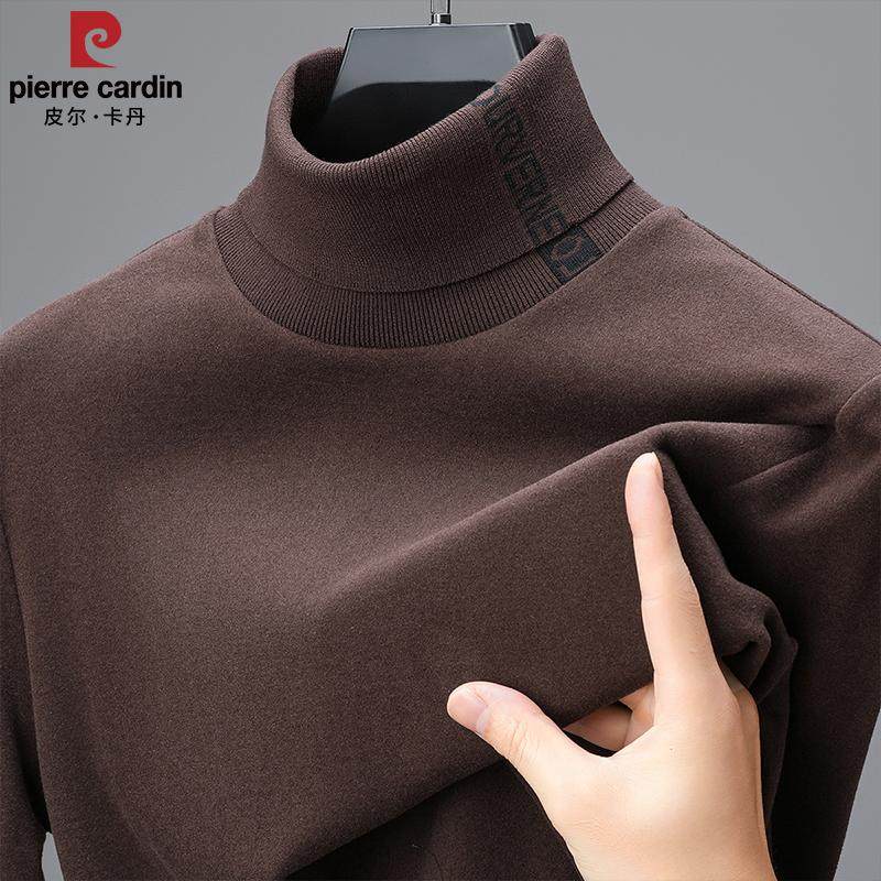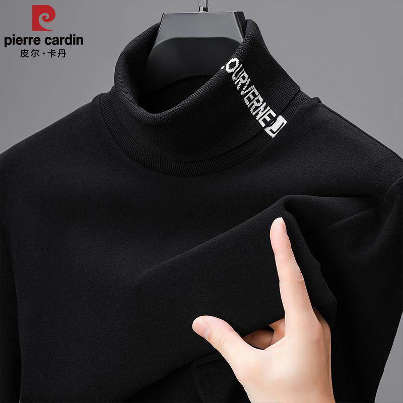 皮尔卡丹高端双面德绒长袖打底衫男双翻领高领秋冬季保暖内衣T恤