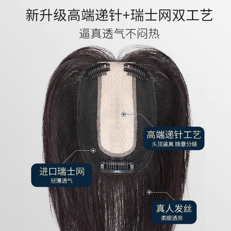 透气假发片女头顶补发增发量蓬松真发全真人发无痕遮白发隐形夏天