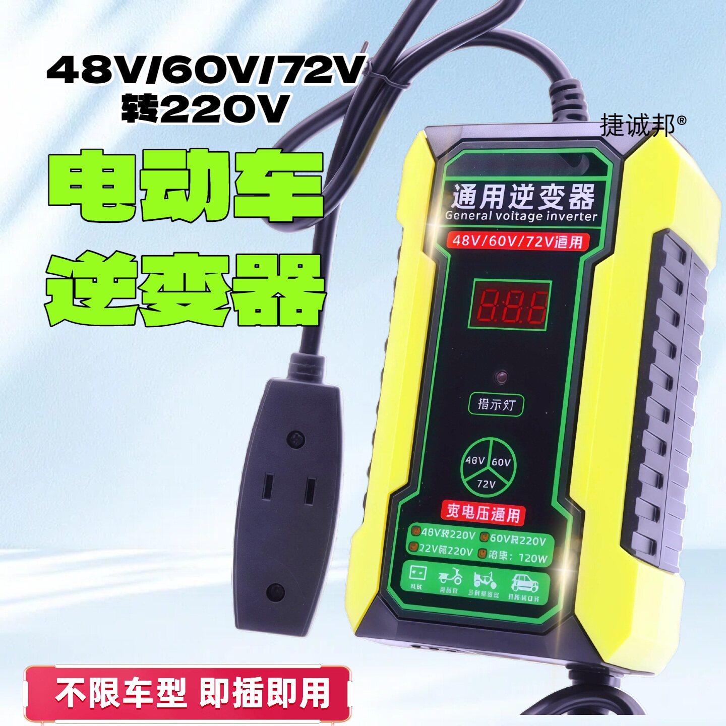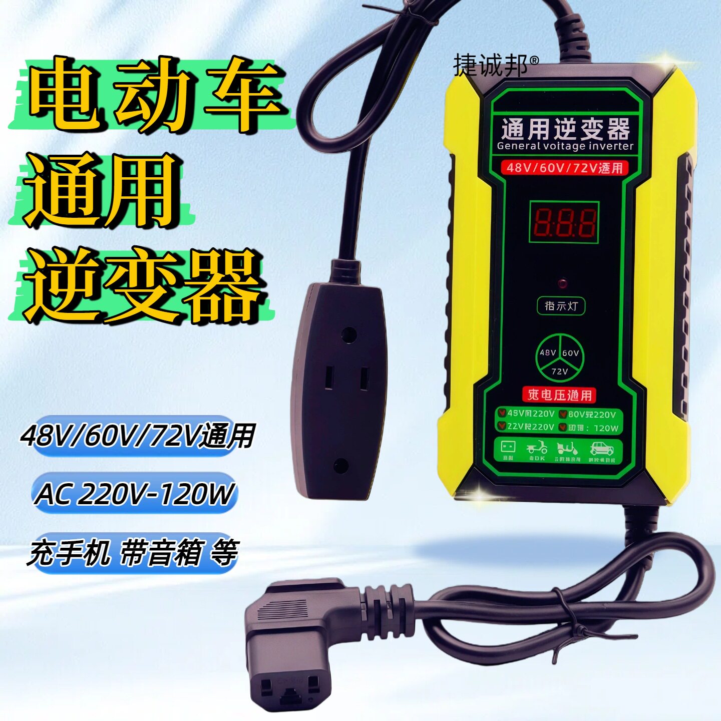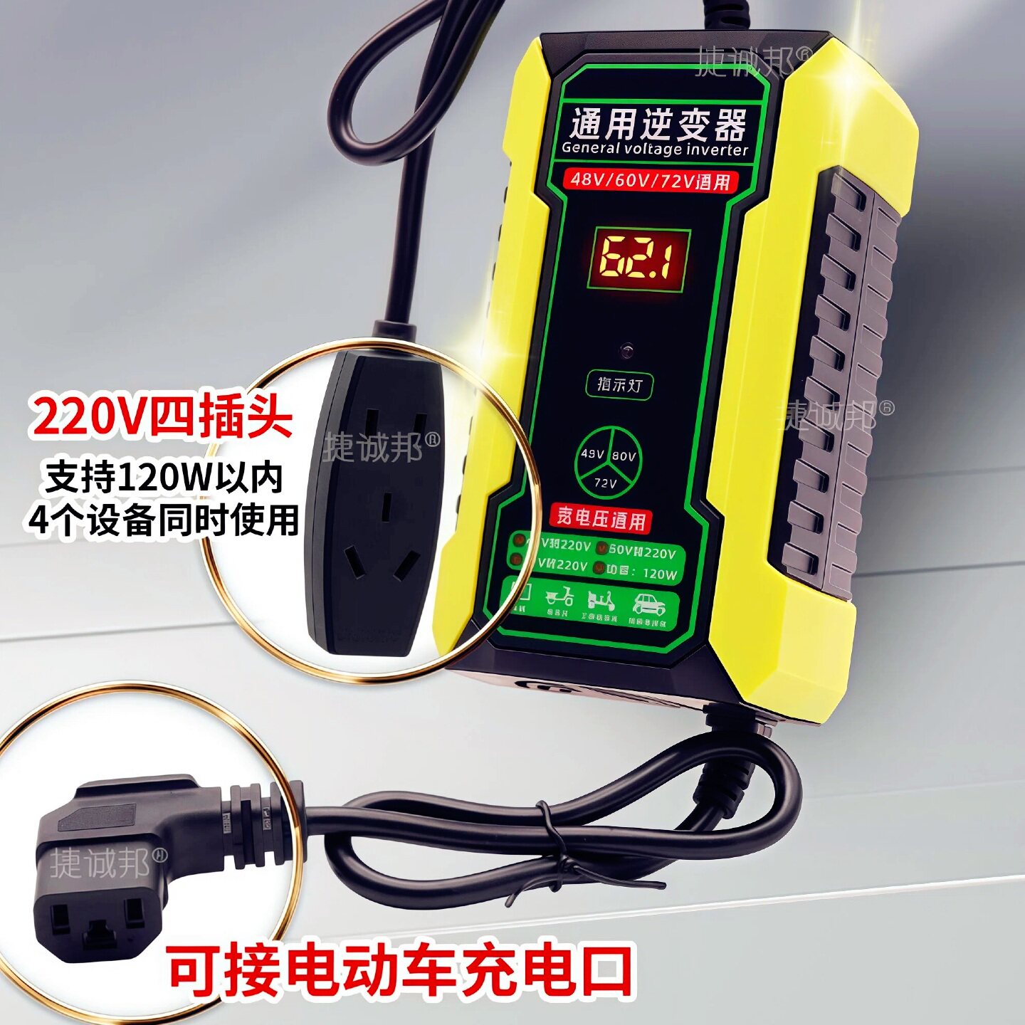 电动车48V60V72V转220V逆变器通用品字头三轮电瓶电源转换充手机