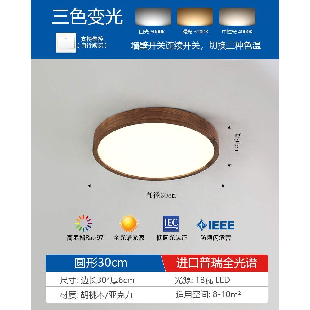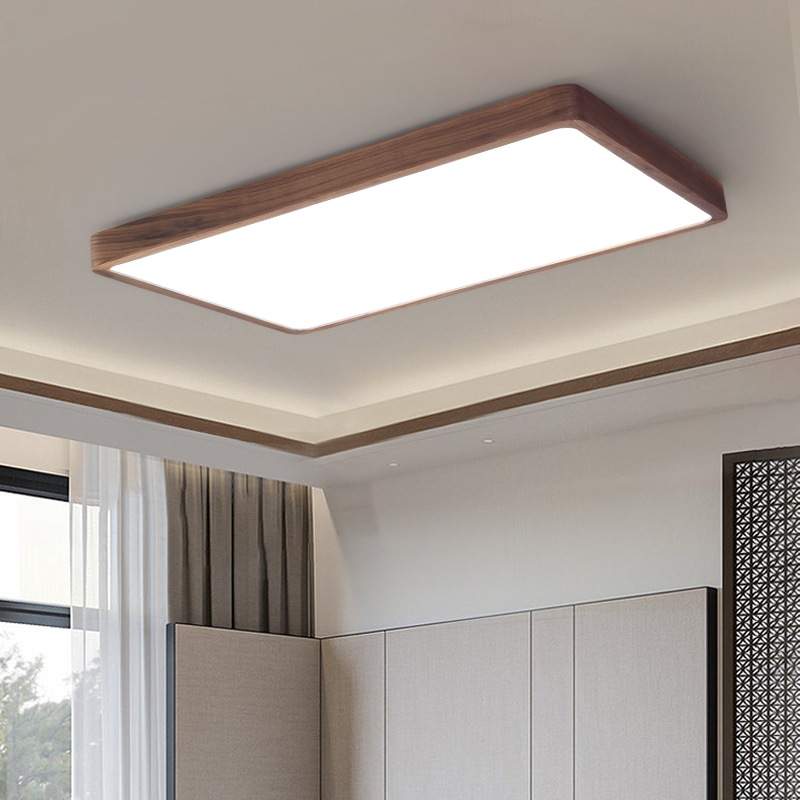 新中式胡桃木长方形吸顶灯现代简约大气客厅大灯创意极简卧室主灯
