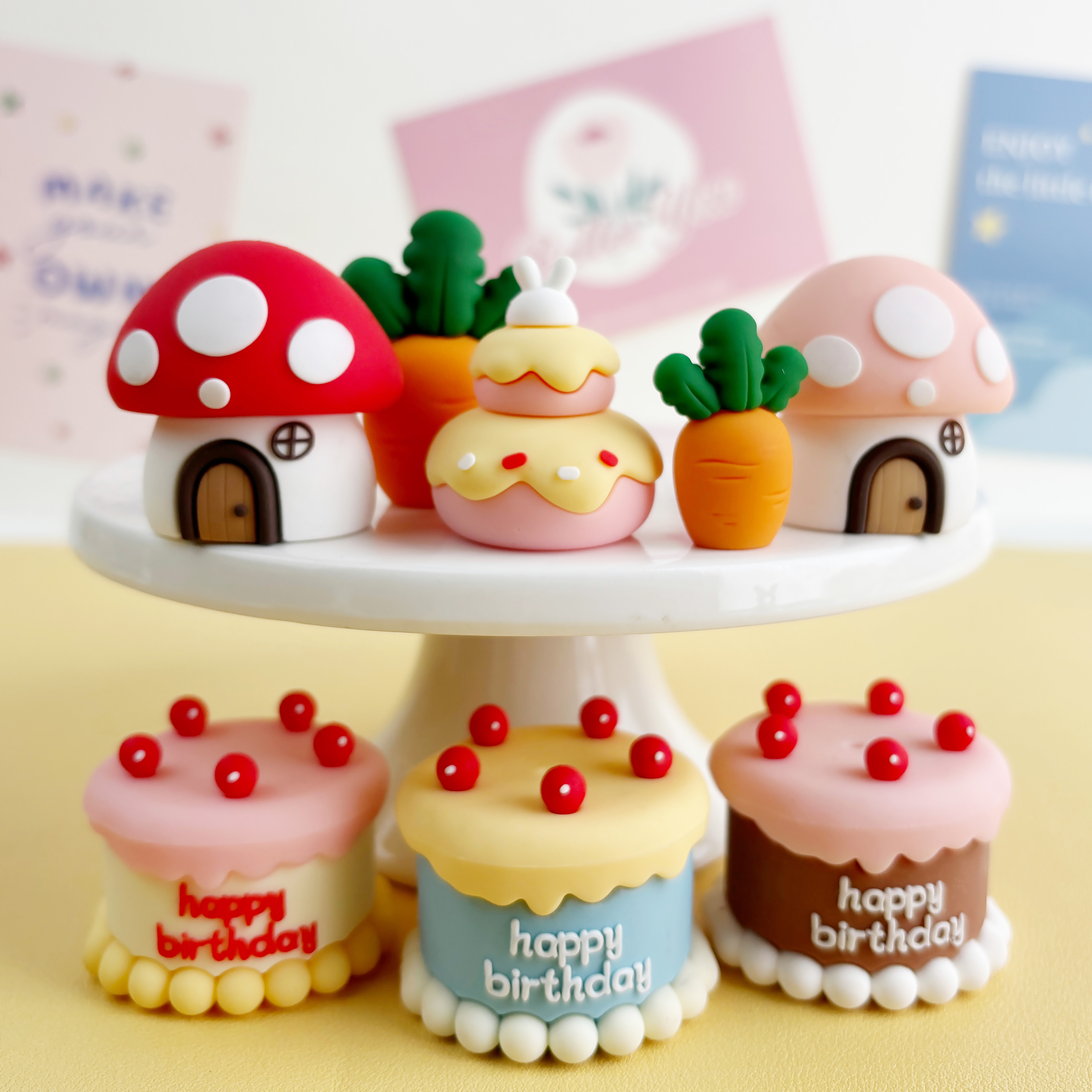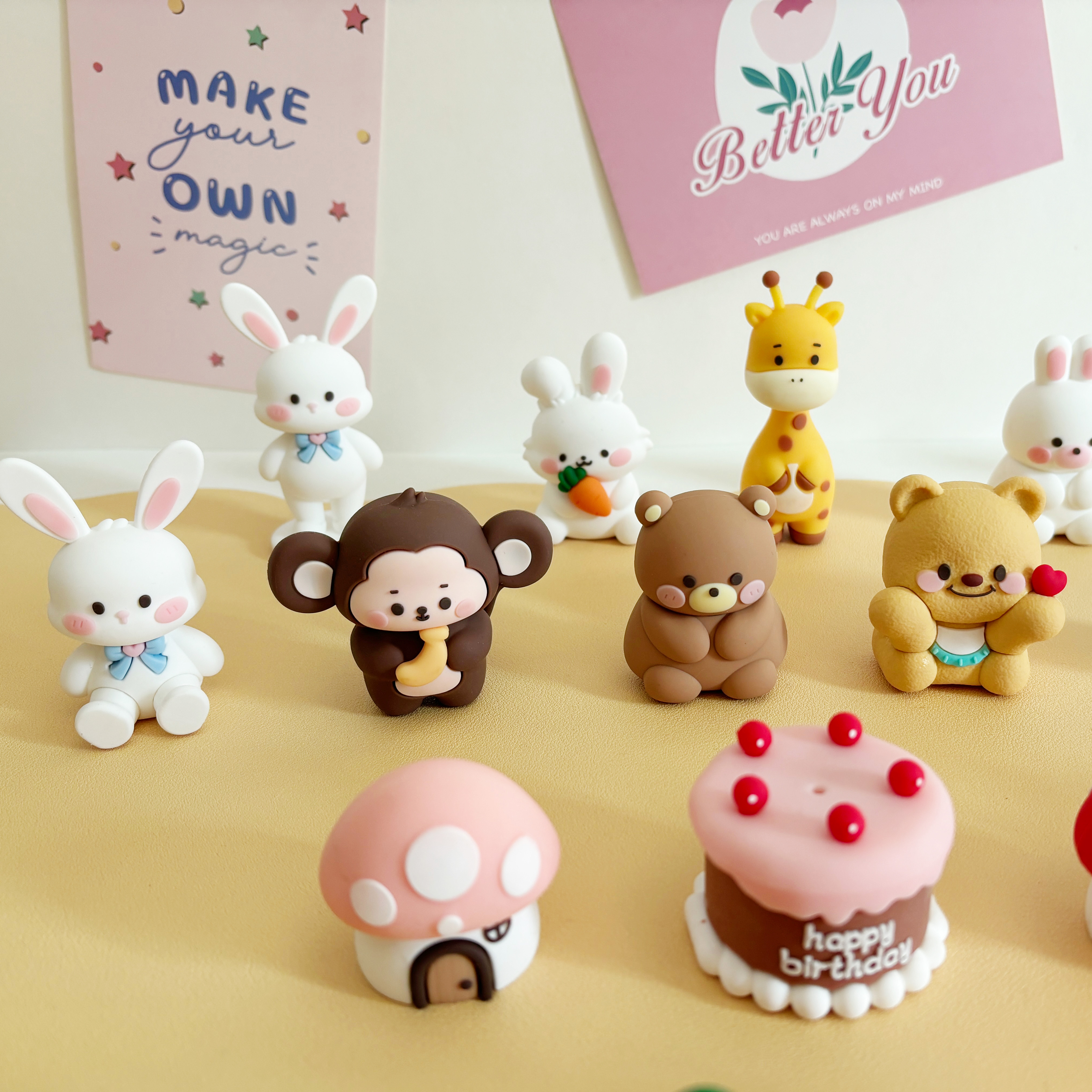 卡通森系动物生日蛋糕装饰软胶小熊小兔蘑菇屋萝卜兔狮子大象插件
