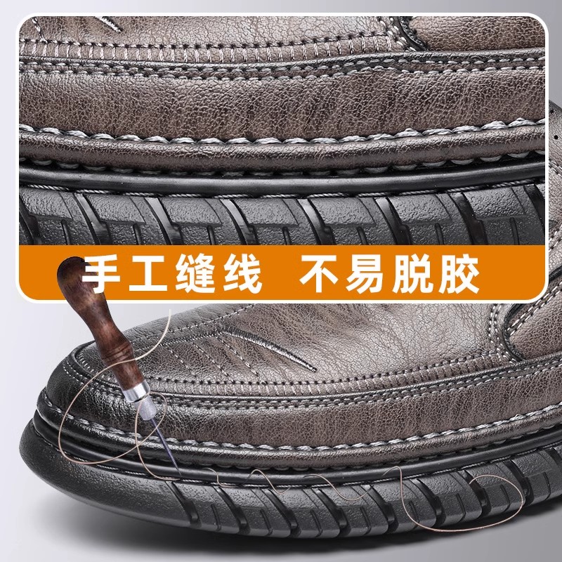 花花公子男鞋秋季新款休闲皮鞋男真皮软底驾车鞋一脚蹬中年爸爸鞋