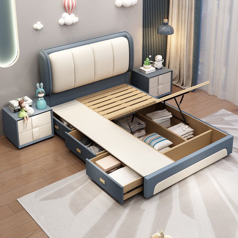 简约现代皮单人床儿童1.2m床小户型次卧室1.35米北欧风软包储物床