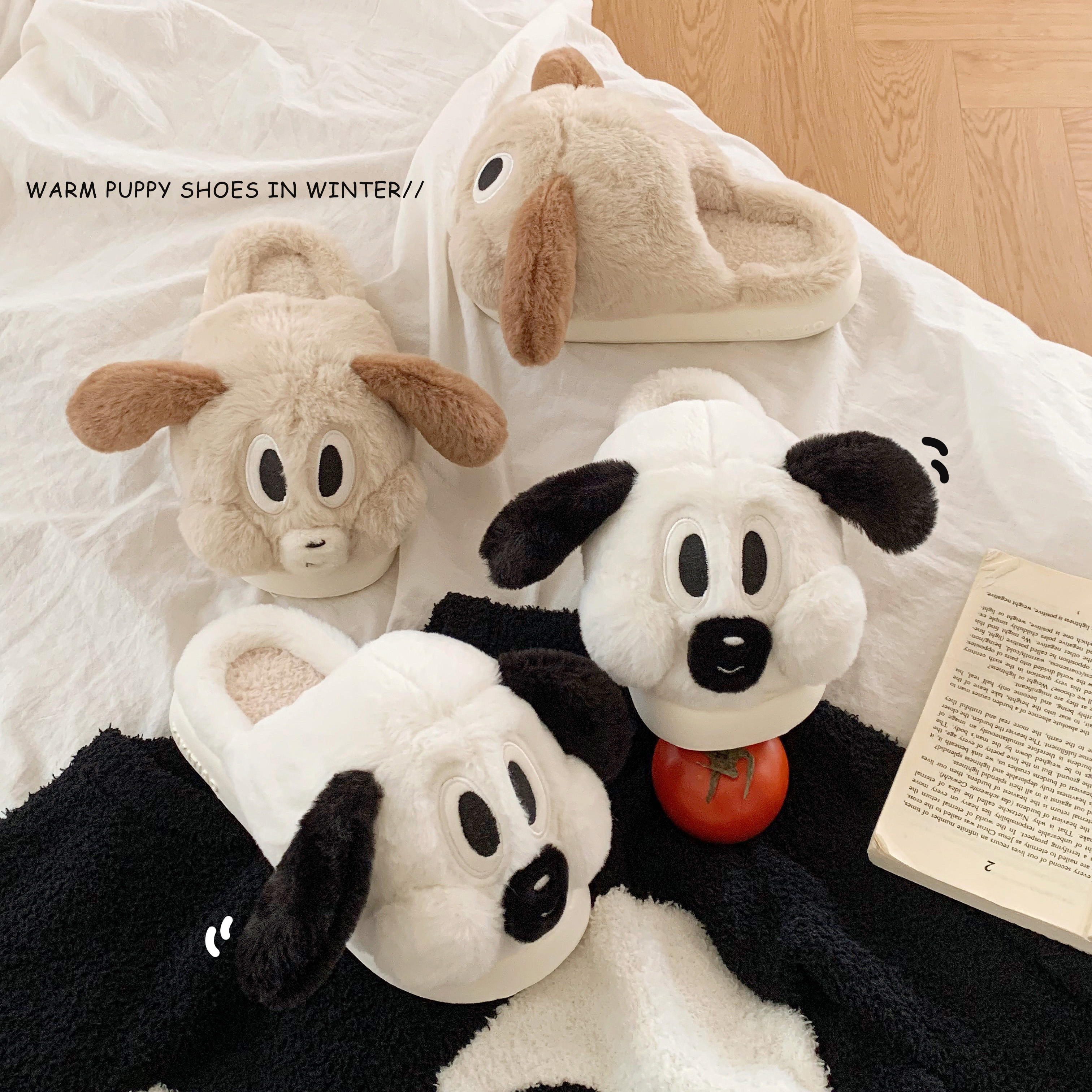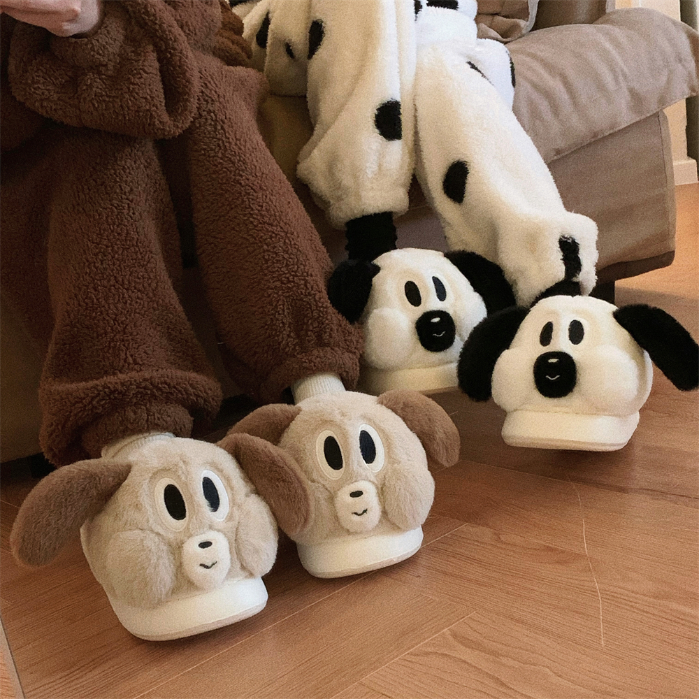 细细条 ins呆萌狗狗棉拖鞋男女居家卧室软厚底防滑冬季情侣毛毛鞋