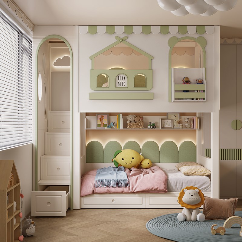 可定制全实木儿j童床双层床上下铺上床下桌男孩女孩树屋高低子母