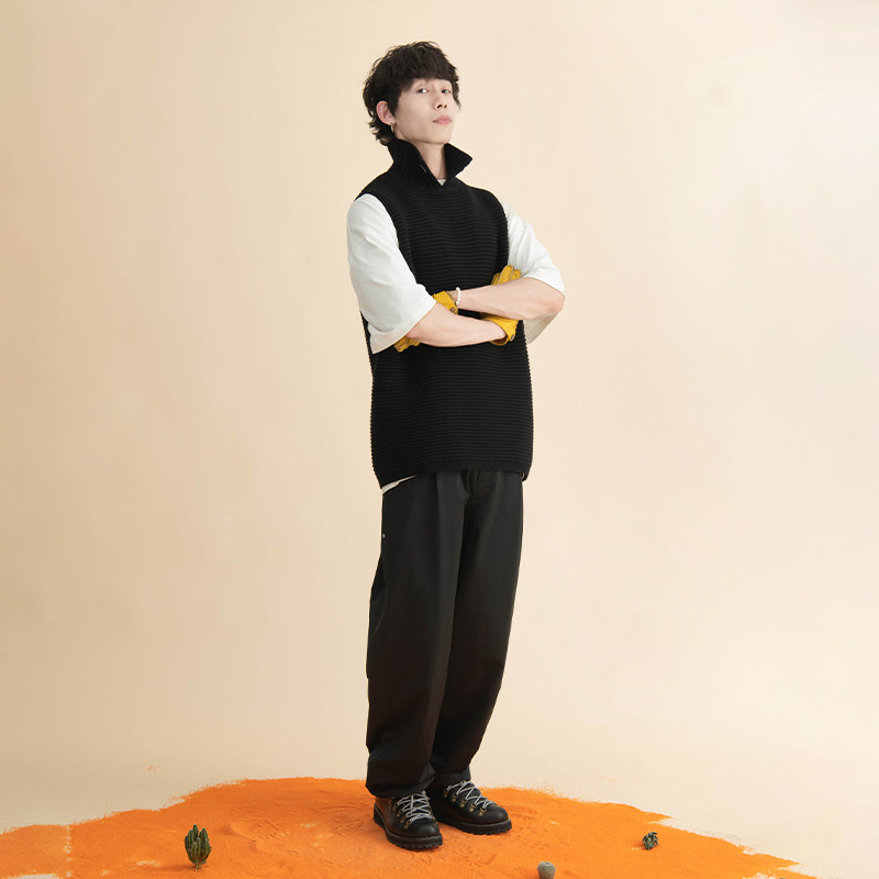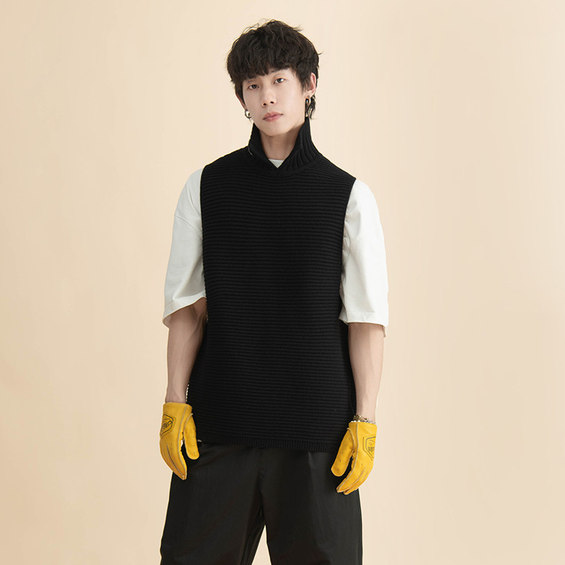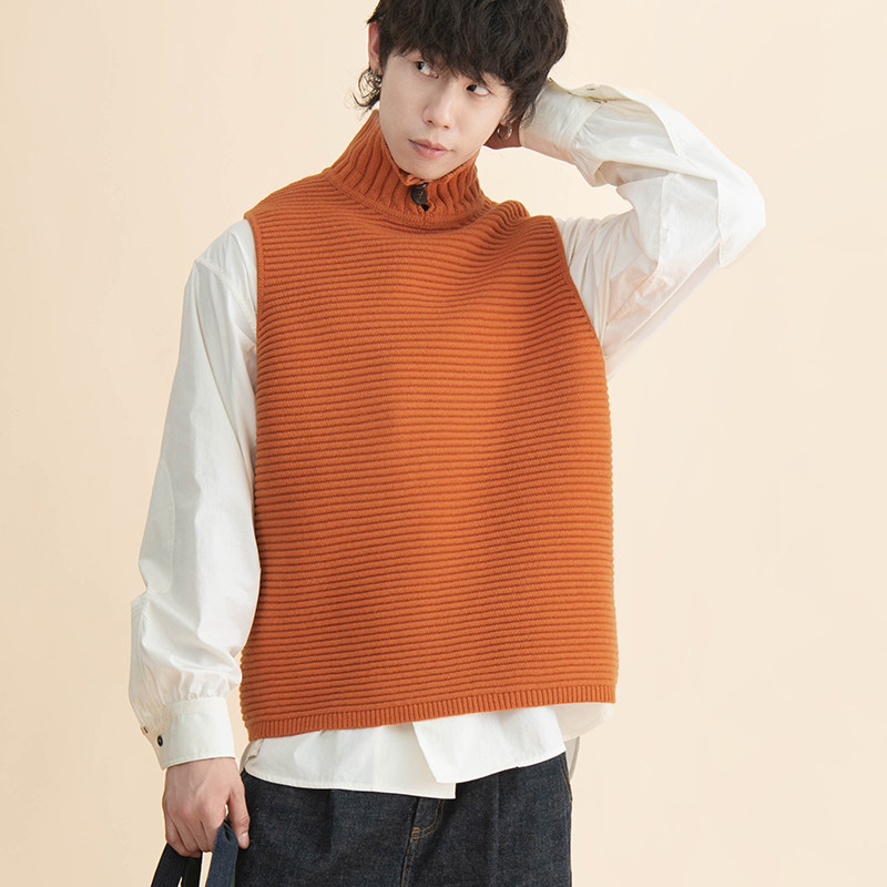 【汪铎同款】HalfwayHouse冬季日系羊毛高领保暖马甲宽松毛衣背心
