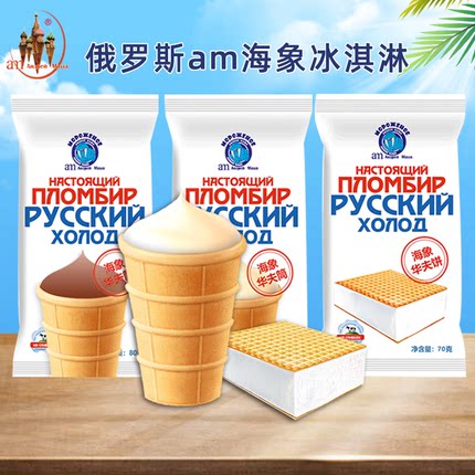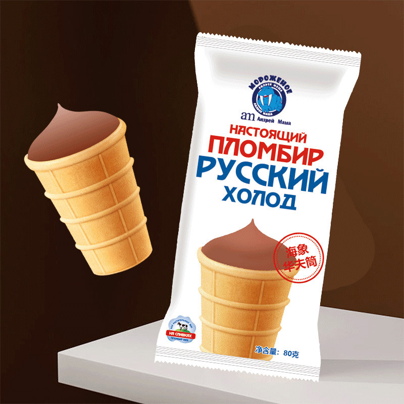 【12支】俄罗斯海象华夫筒冰淇淋 奶油巧克力威化雪糕批发 冰激凌