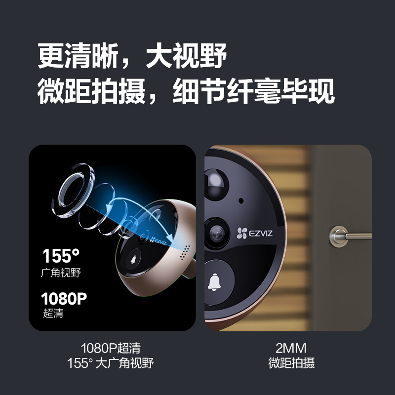 海康威视旗下萤石DP2智能猫眼远程监控300万家用可视门铃摄像头