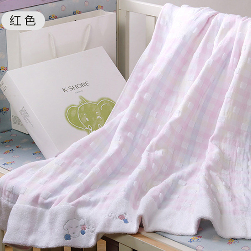 金号纯棉儿童毛巾被方形浴巾空调毯双层无捻卡通绣花柔软舒适