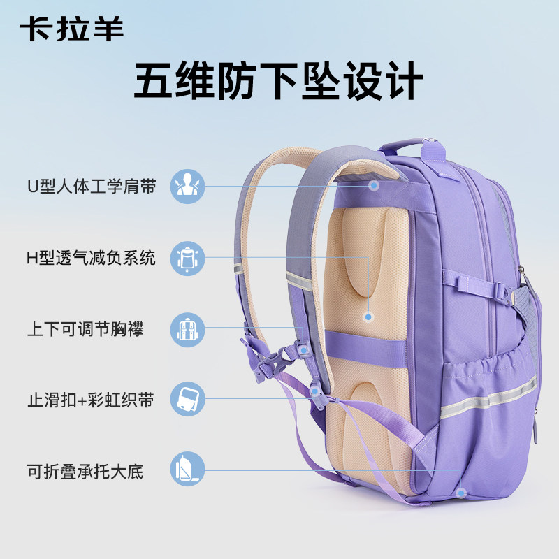 新款卡拉羊减负初中生书包五六年级大容量双肩包耐磨防水轻便背包