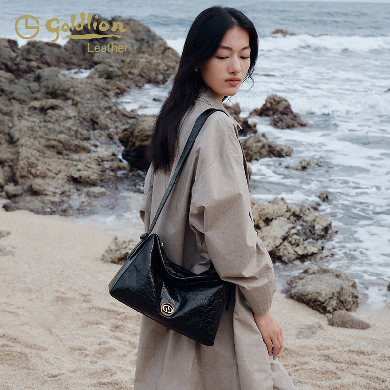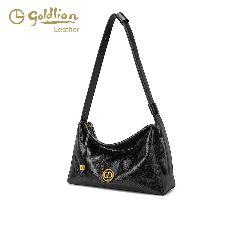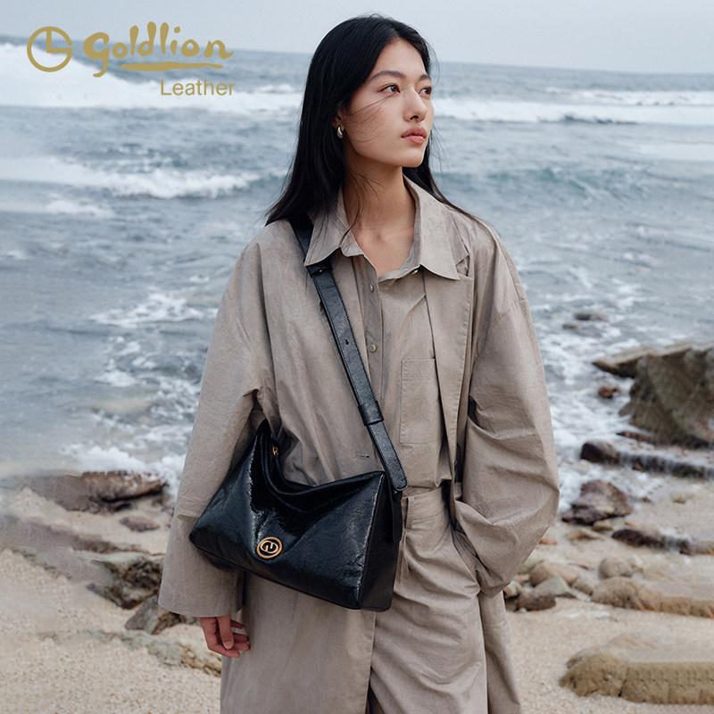 金利来时尚单肩流浪包真皮2025新款大容量软皮褶皱斜挎hobo女包潮