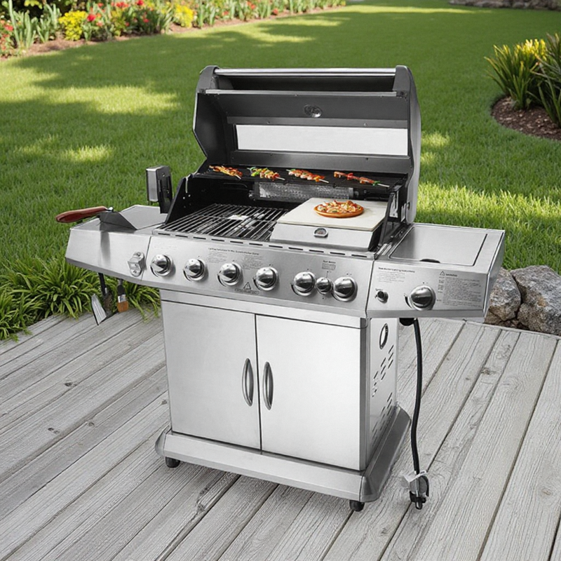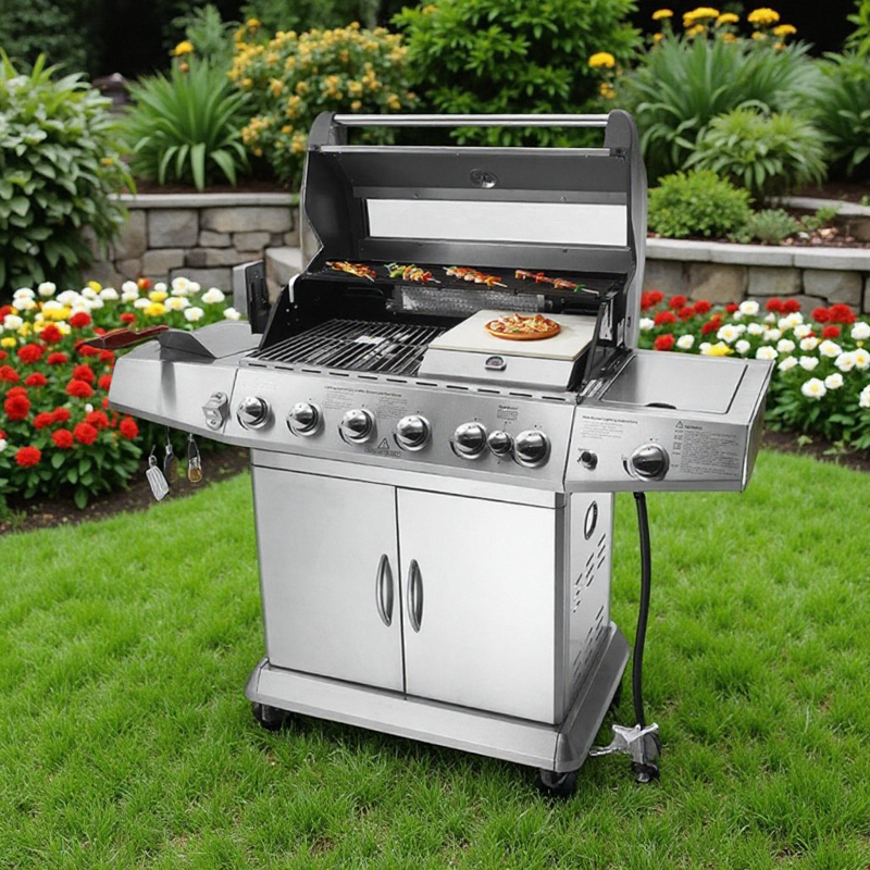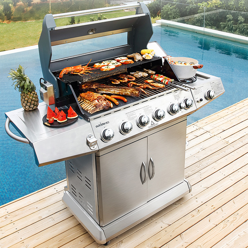 高端304不锈钢庭院别墅烧烤炉豪华户外燃气大号烤架披萨烤炉美式