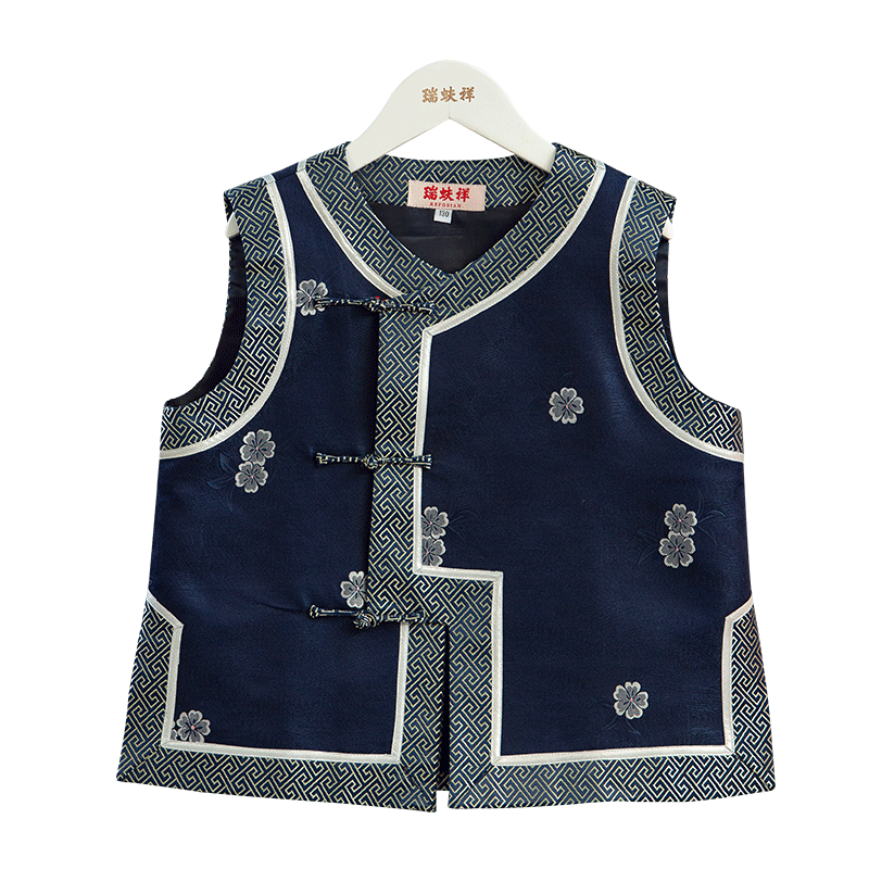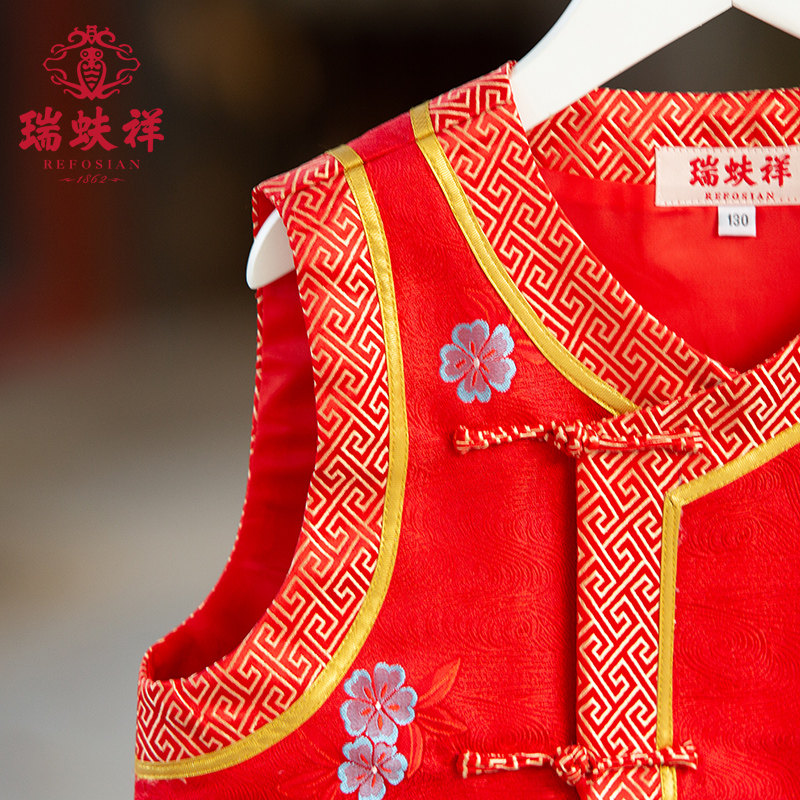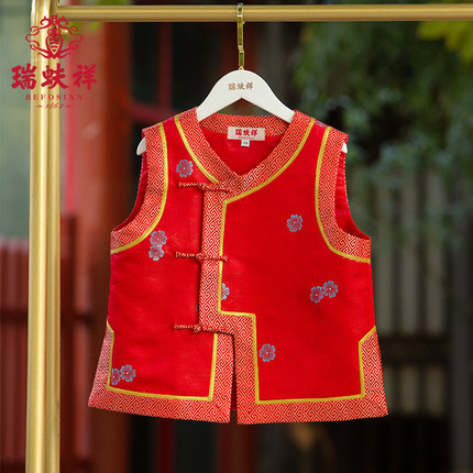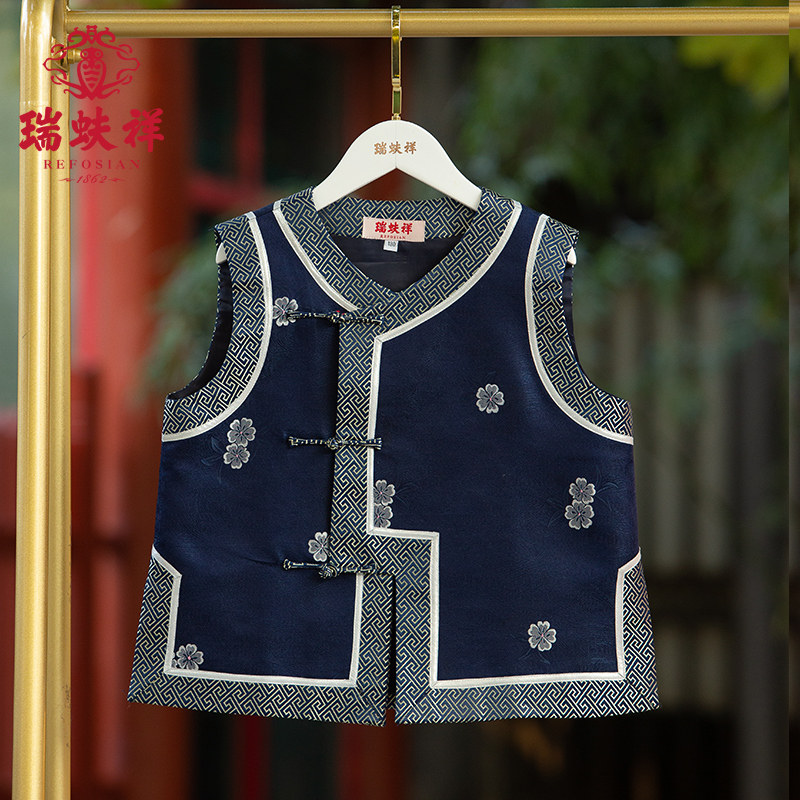 瑞蚨祥秋冬新款中国风复古唐装刺绣手工盘扣偏襟男童马褂背心马甲