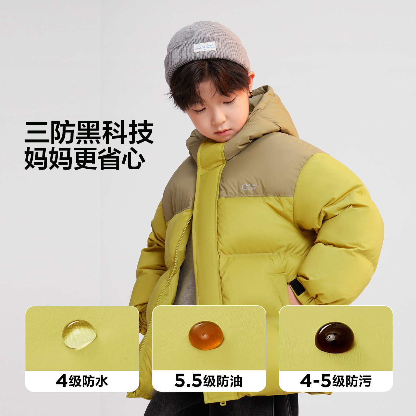 男童石墨烯背暖发热90绒子羽绒服