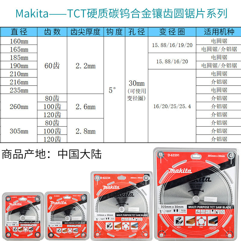 Makita/牧田木工用硬质合金锯片7/9/10/12寸木材切割片电圆锯锯片