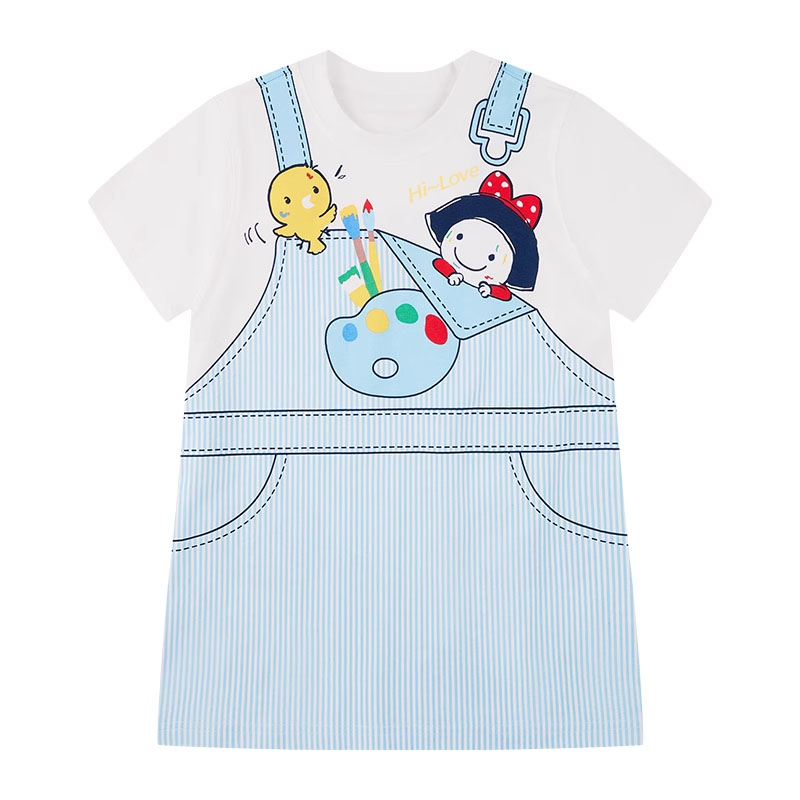 【凉感A类】deideiup女童短袖t恤2025新款儿童夏装中长款连衣裙子