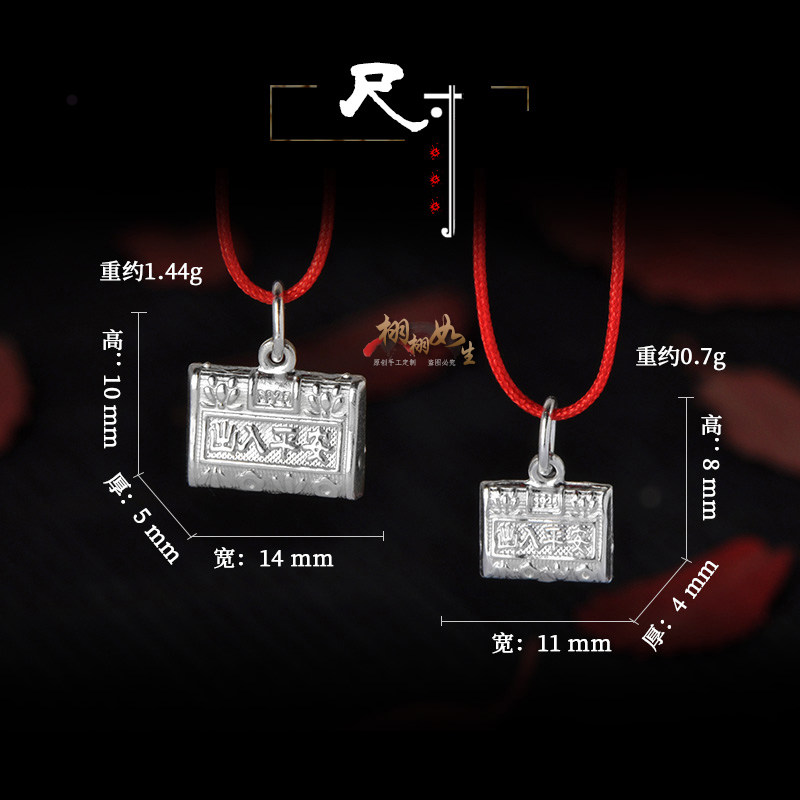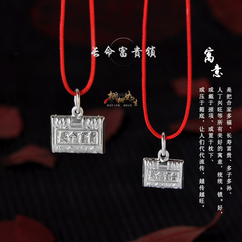 999纯银双面长命锁项链吊坠宝宝平安富贵满月手脚链银饰手工配件