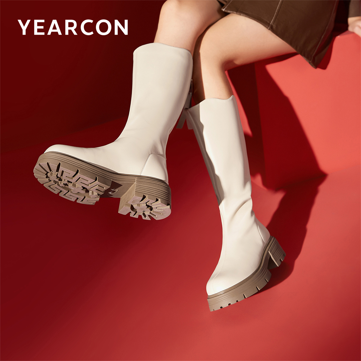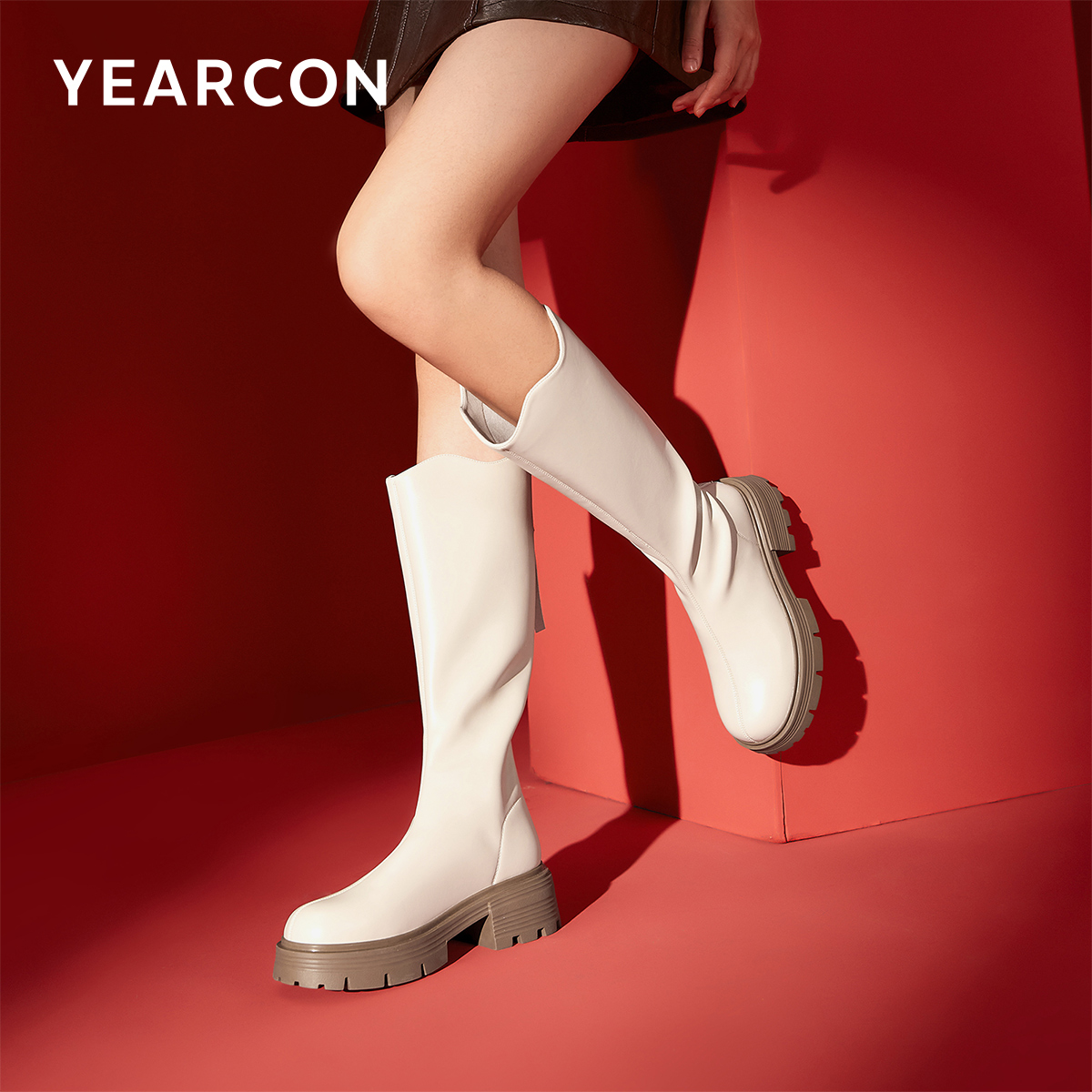 意尔康女鞋冬季女士长靴不过膝高筒瘦瘦靴加绒粗跟骑士靴休闲皮靴
