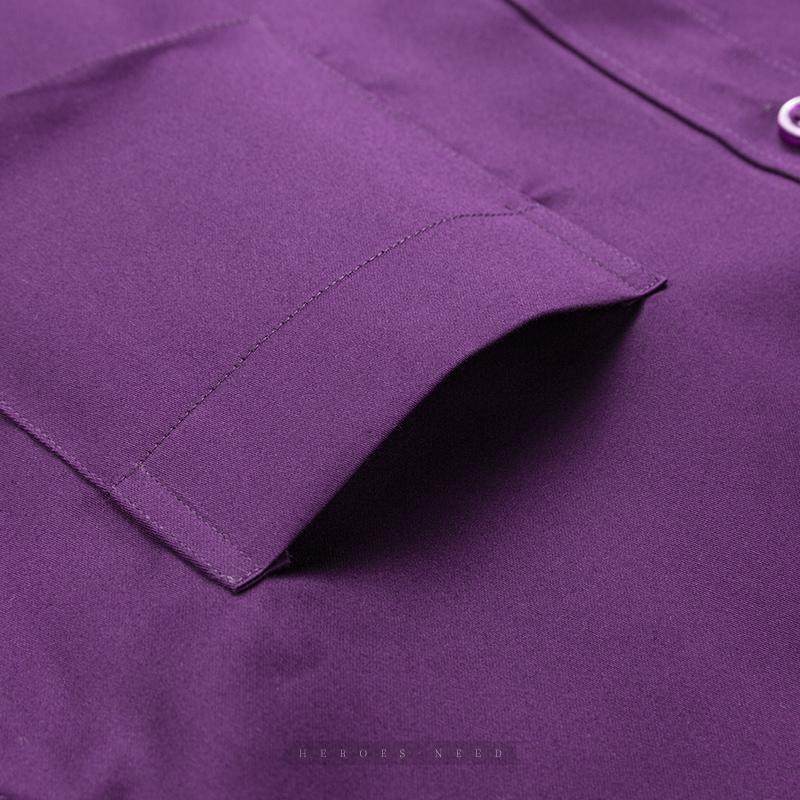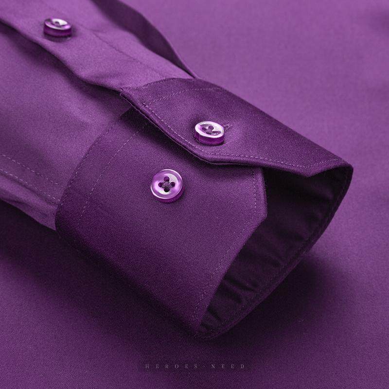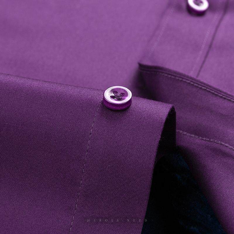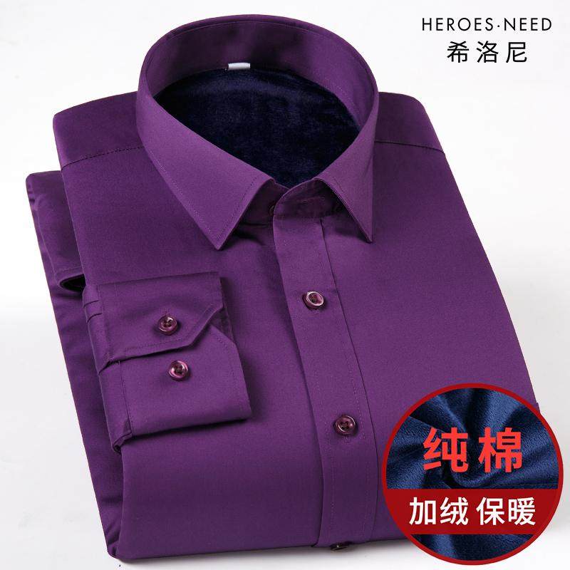 HN高端纯棉深紫色保暖男士衬衫长袖丝光棉高级感商务全棉加绒衬衣