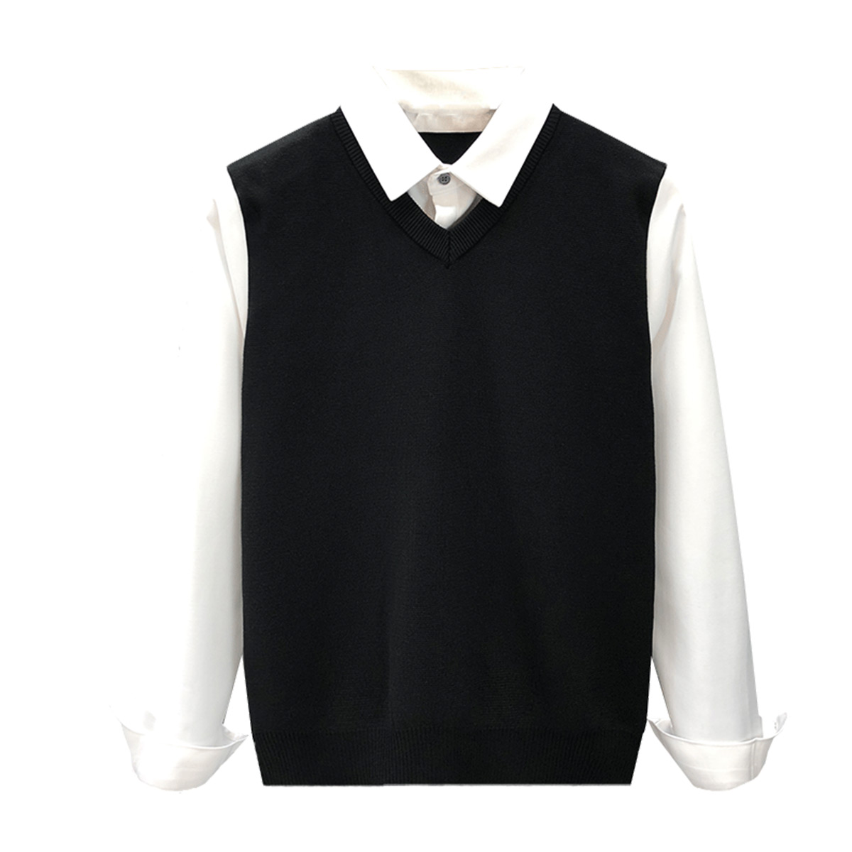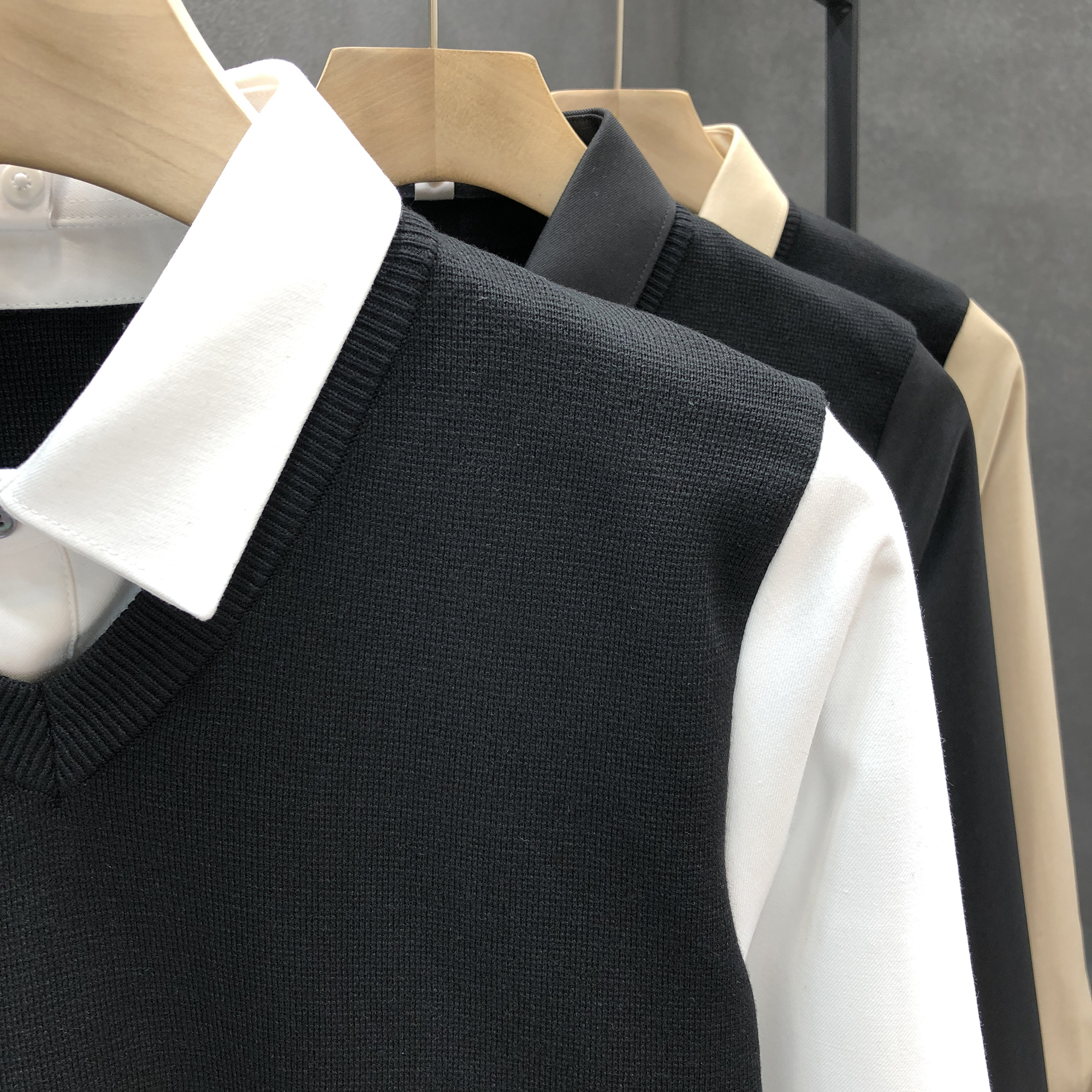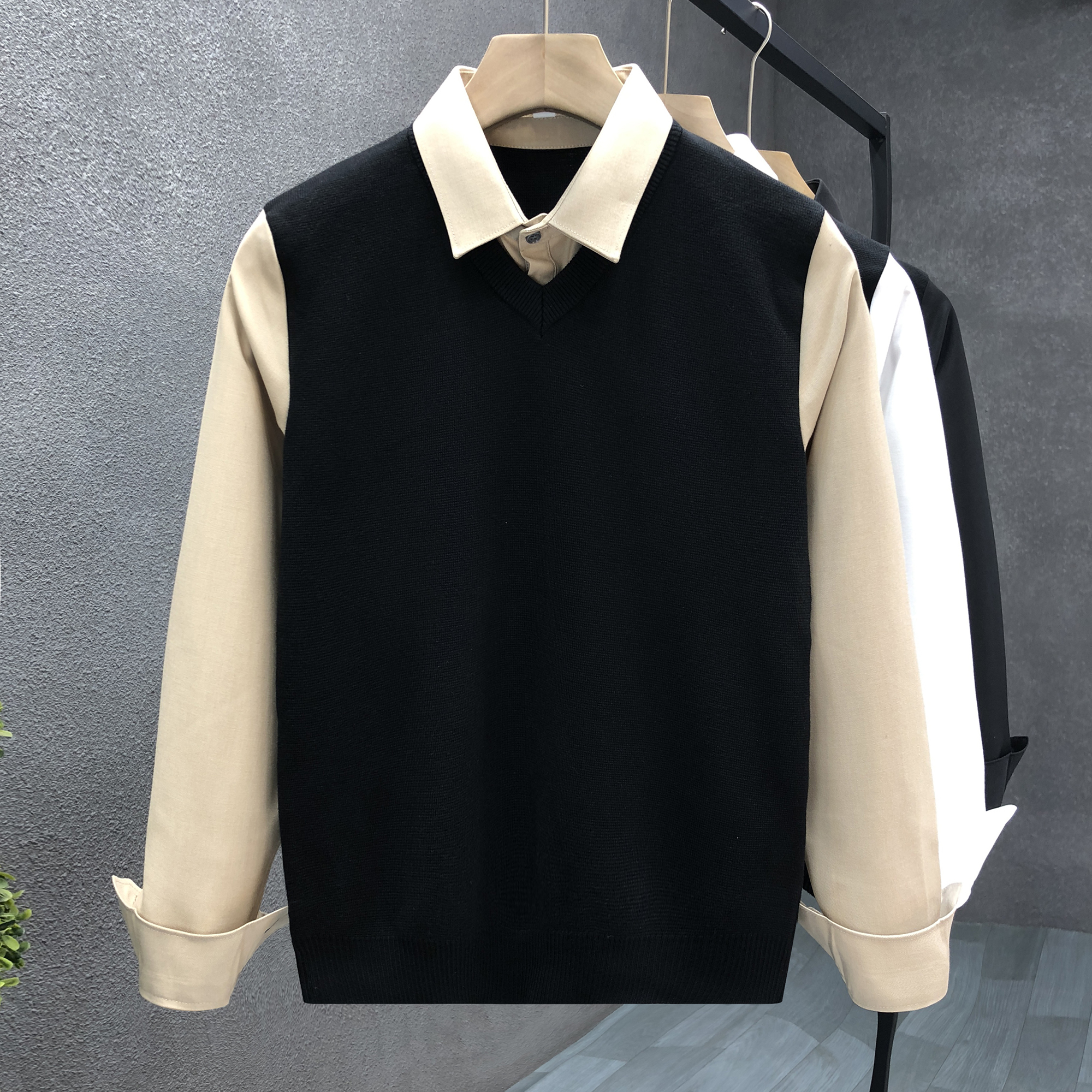 高端衬衫领假两件毛衣男秋冬季