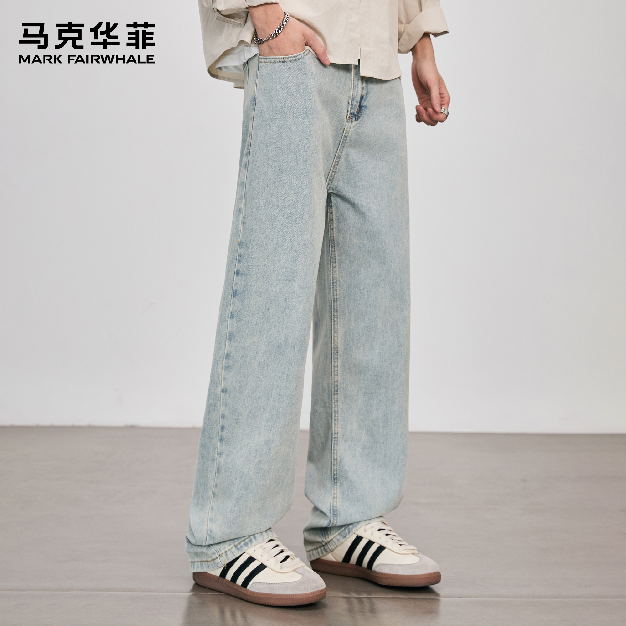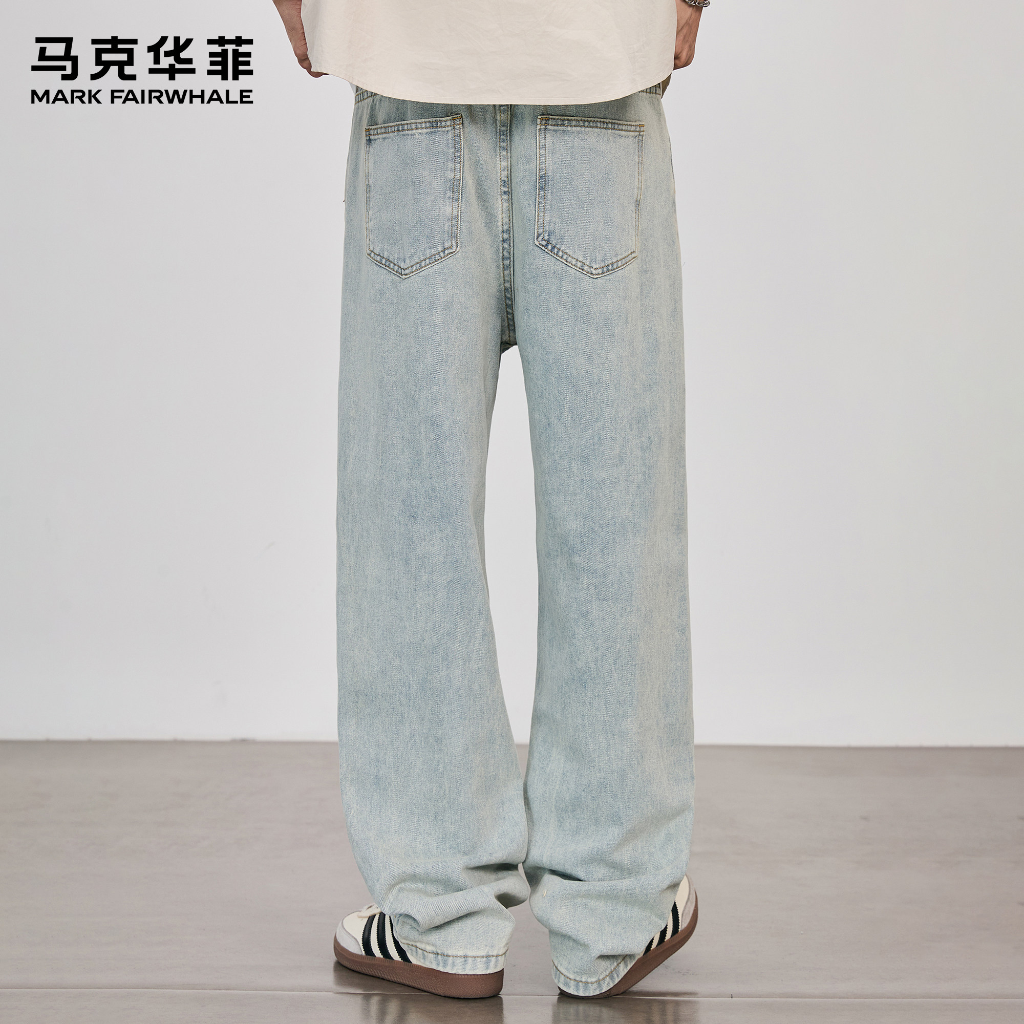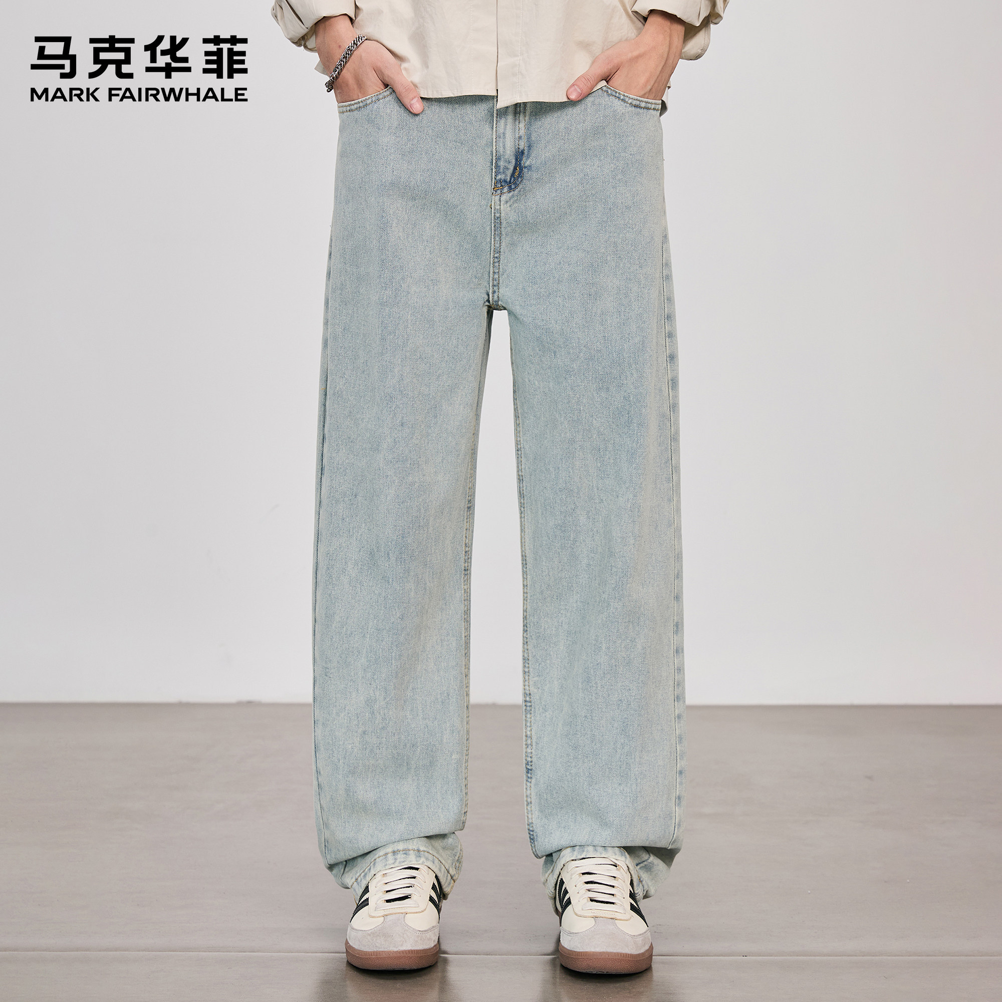 马克华菲牛仔裤男2025新款潮牌美式复古青少年做旧痞帅直筒阔腿裤