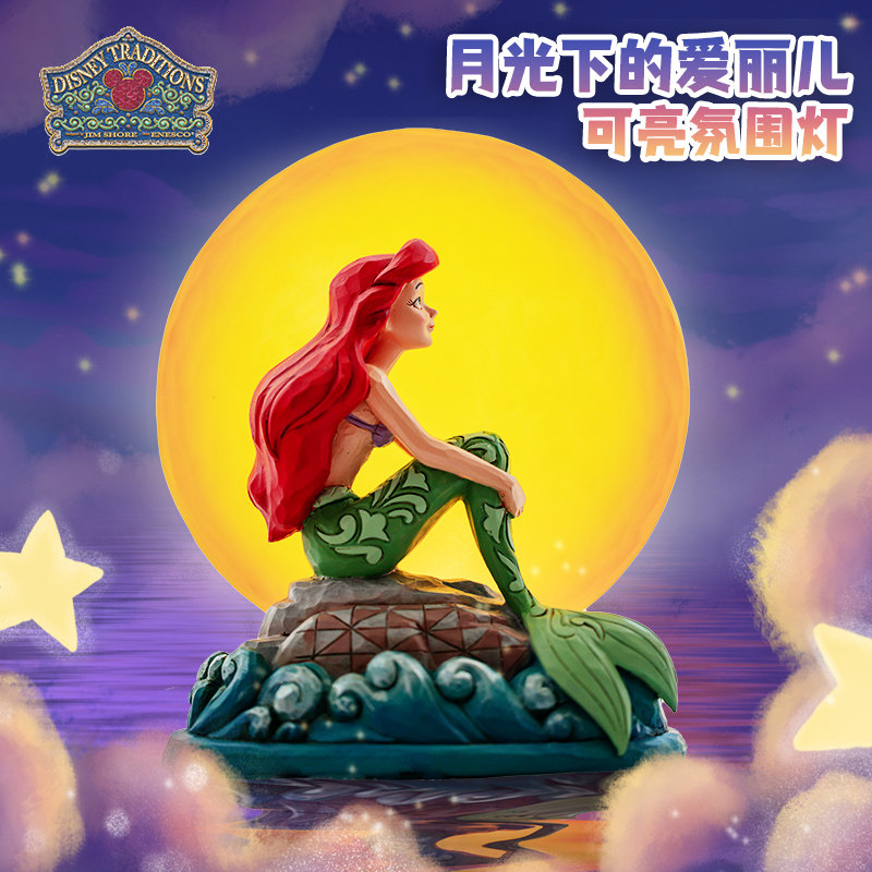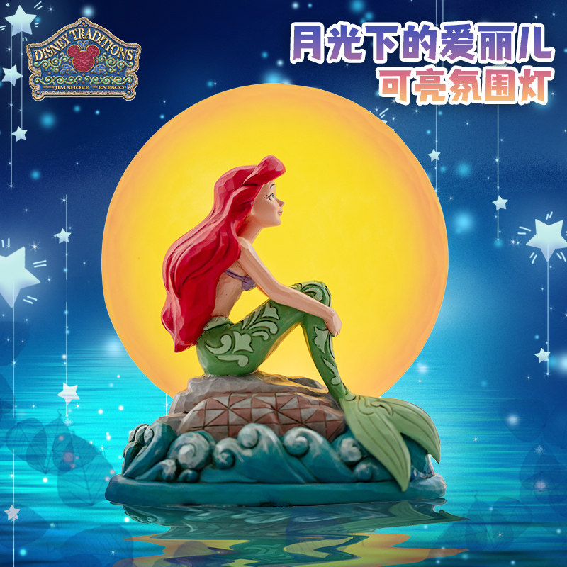 enesco迪士尼公主小美人鱼手办月光下的爱丽儿摆件可亮灯生日礼物