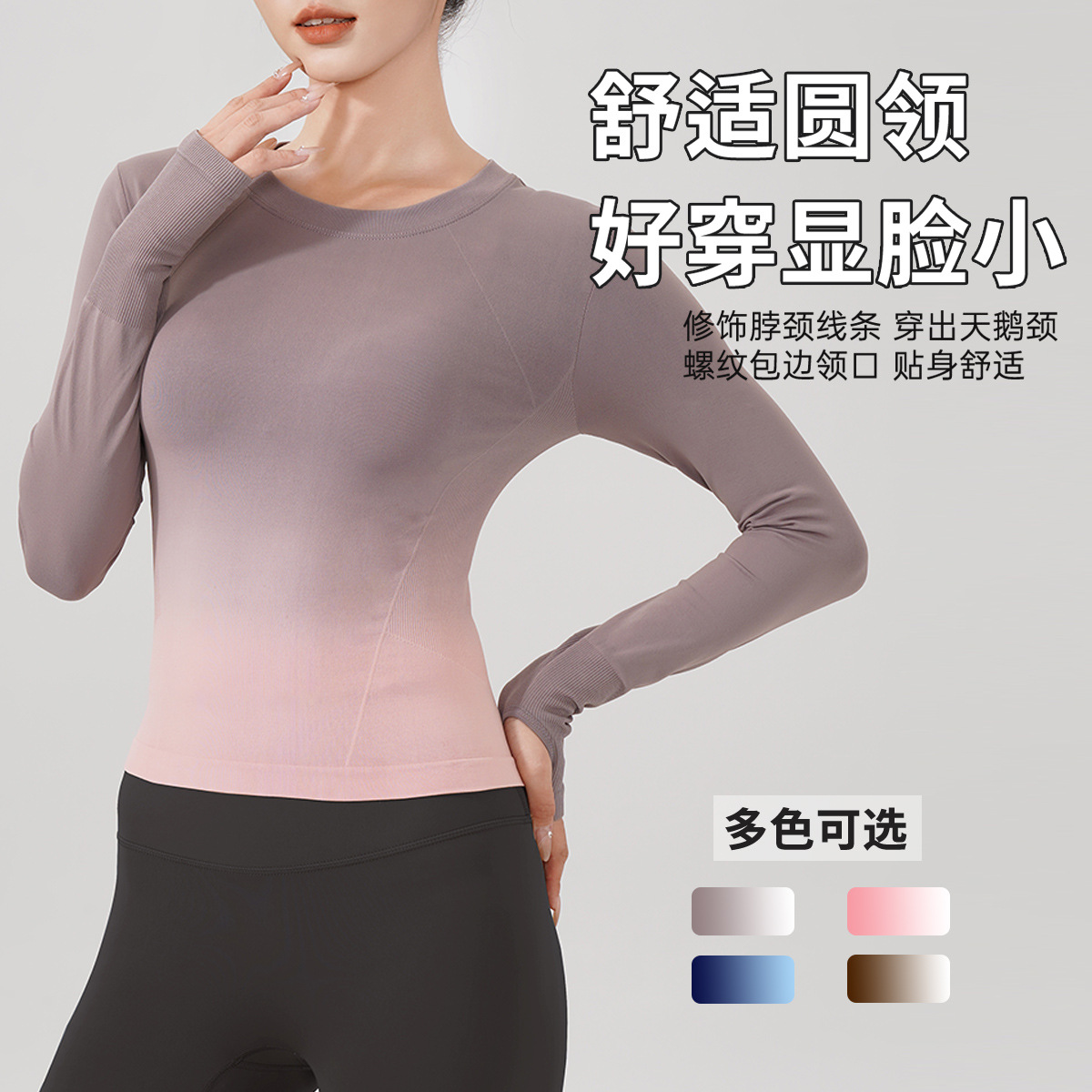 新款渐变色瑜伽服上衣女秋季薄款速干长袖运动t恤紧身健身服