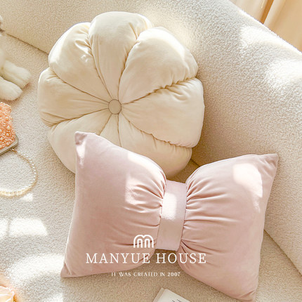 蔓越家 ins风粉色蝴蝶结抱枕靠垫卧室软装腰靠枕靠垫套含芯蒲团