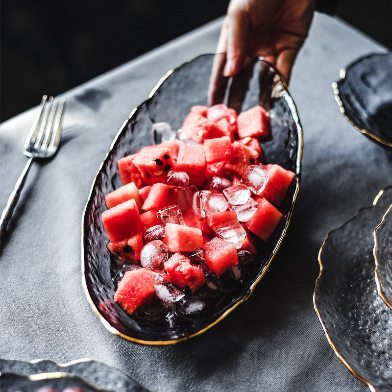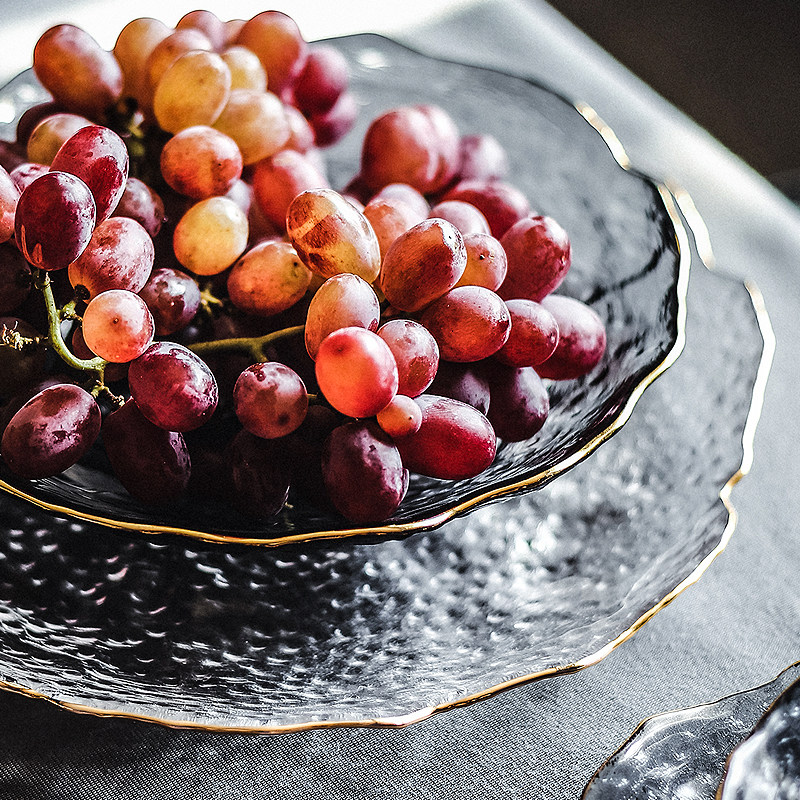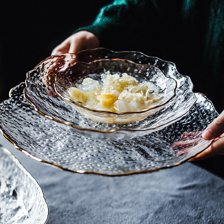 日式餐具轻奢金边玻璃盘水果盘沙拉碗盘子家用餐盘创意甜品碟客厅