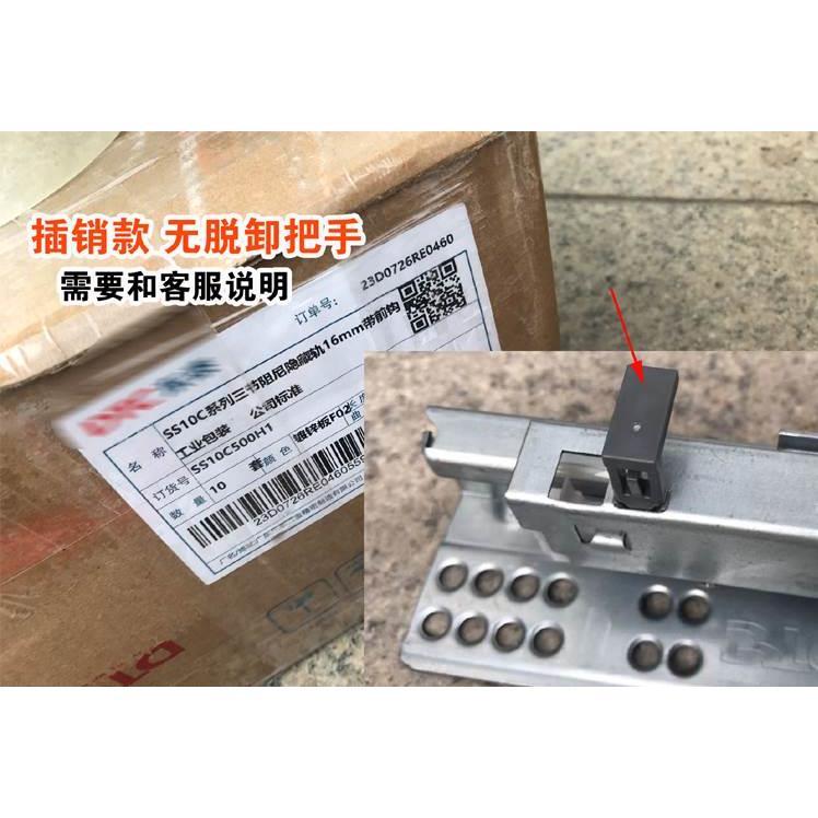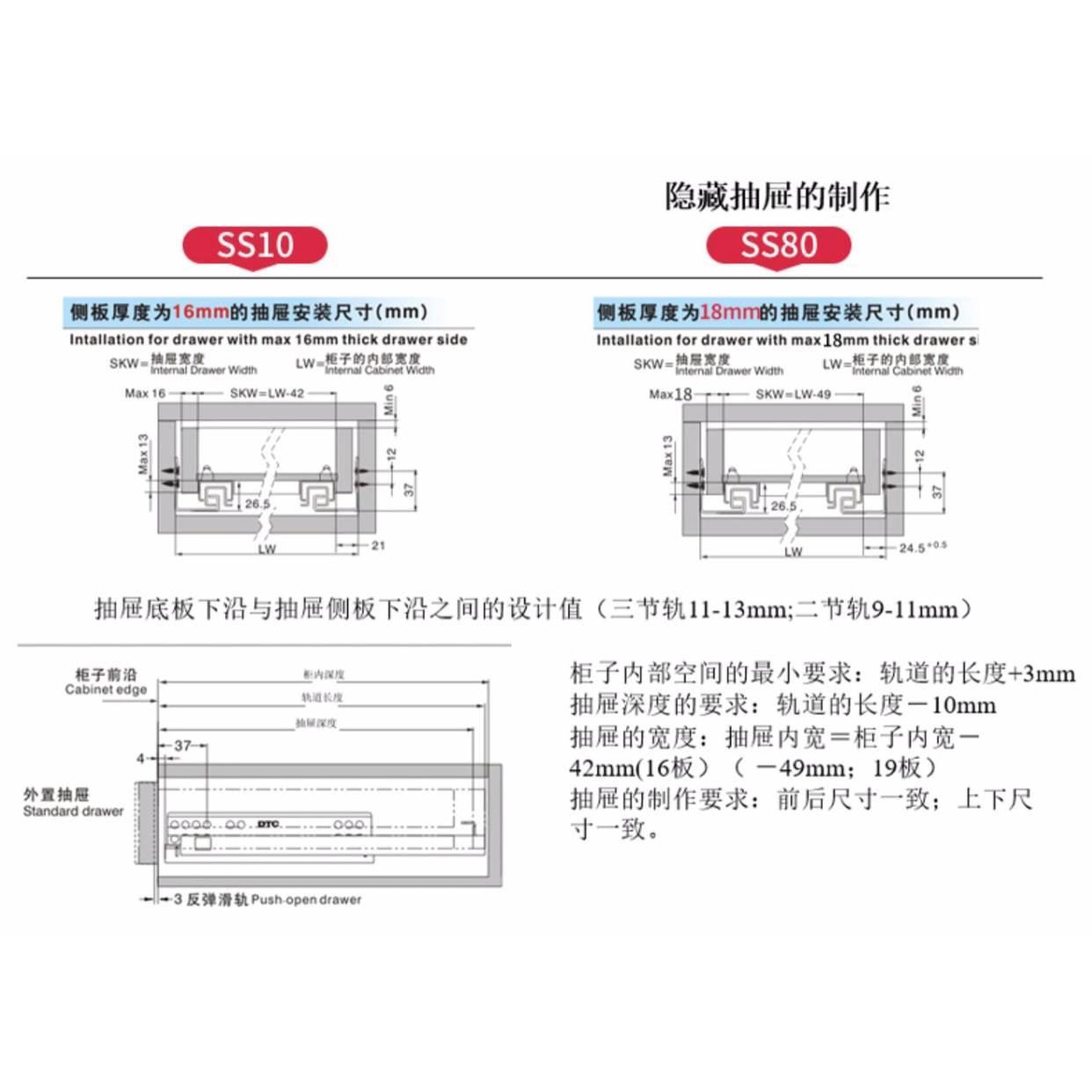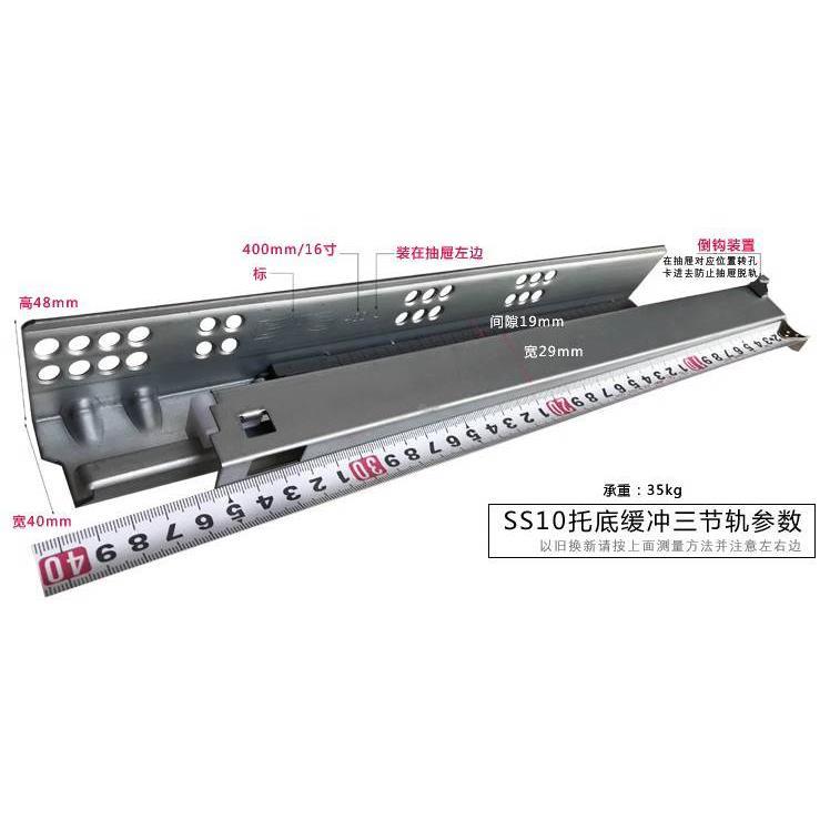 东泰DTC三节全拉隐藏式阻尼托底滑轨缓冲抽屉滑道导轨16mm板SS10