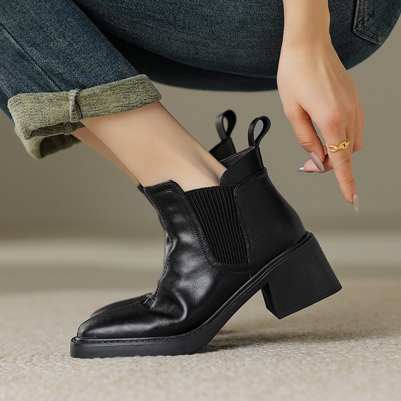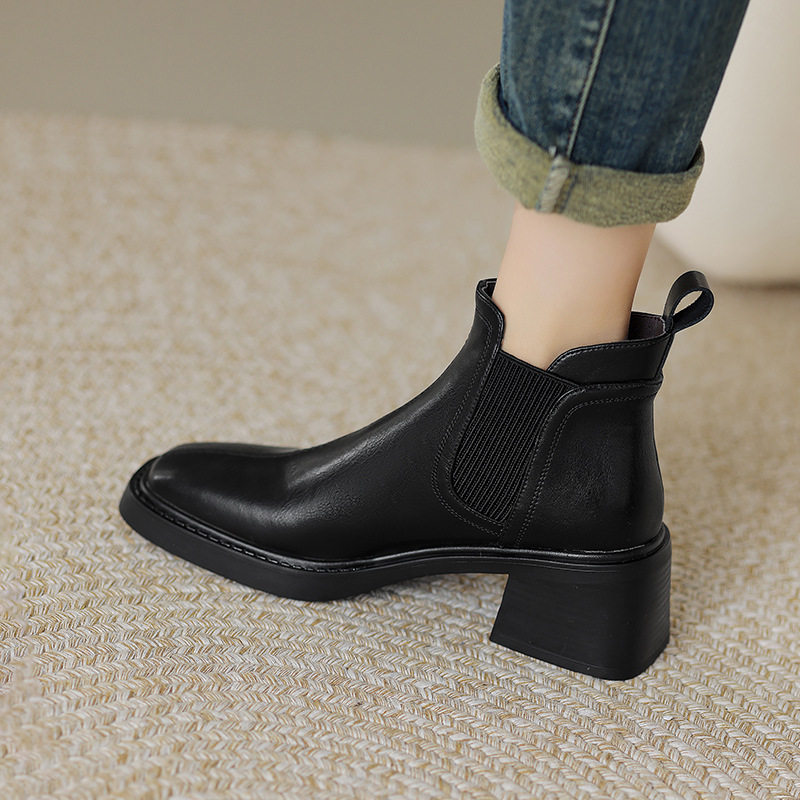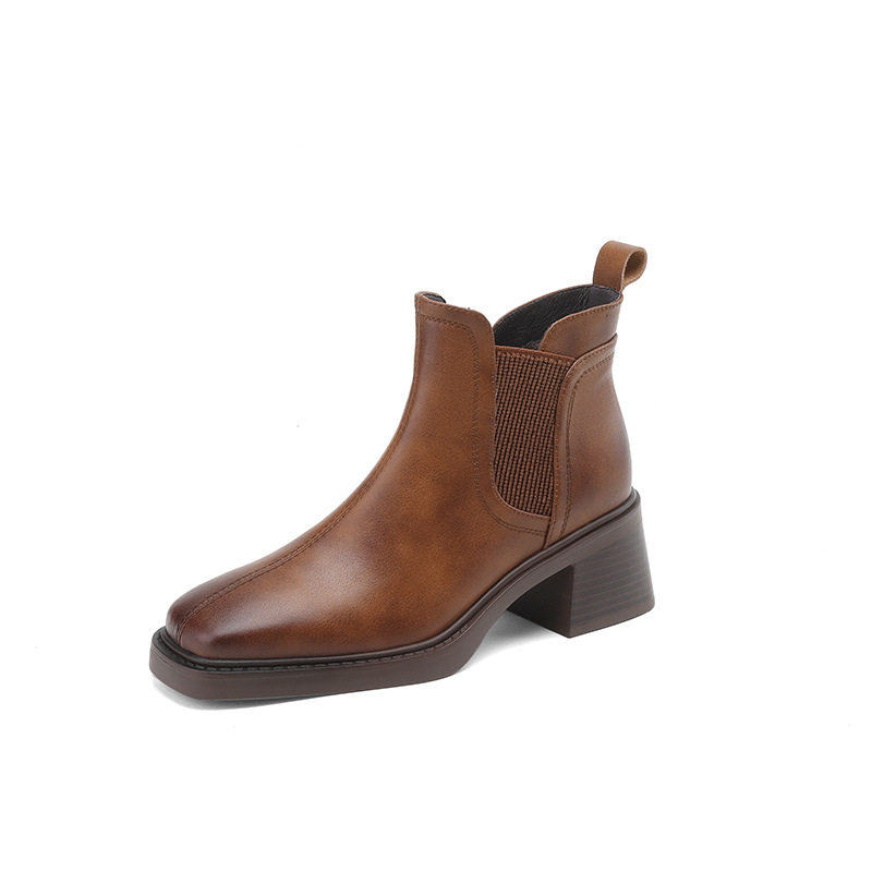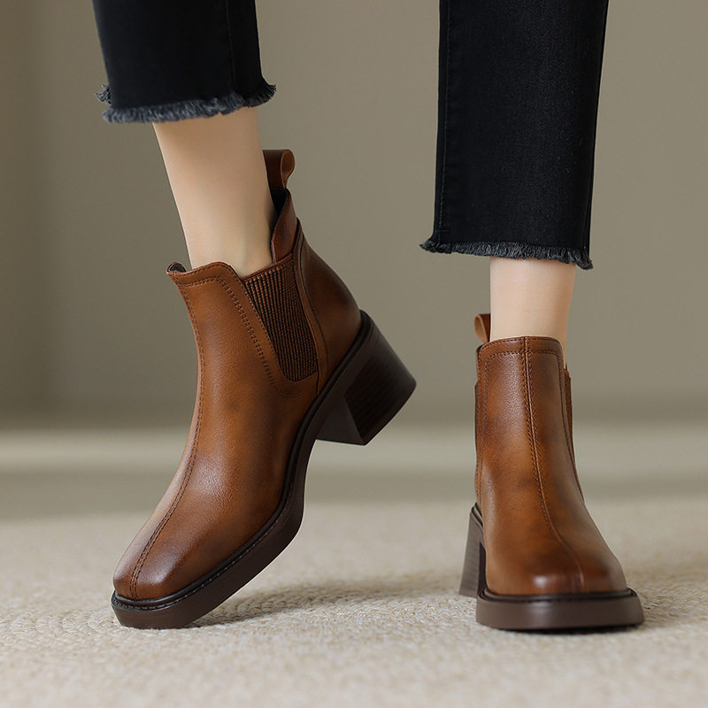 非侈Feichi 酷Girl~真皮方头擦色马丁靴女复古英伦风粗高跟短靴子