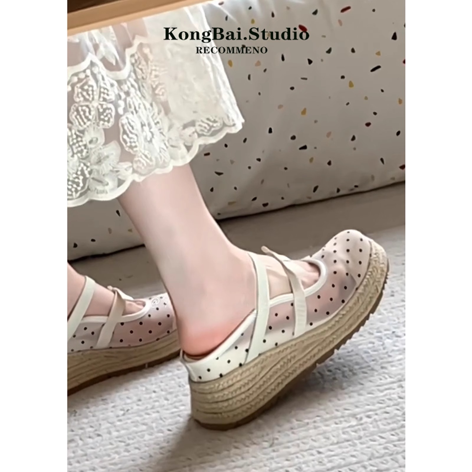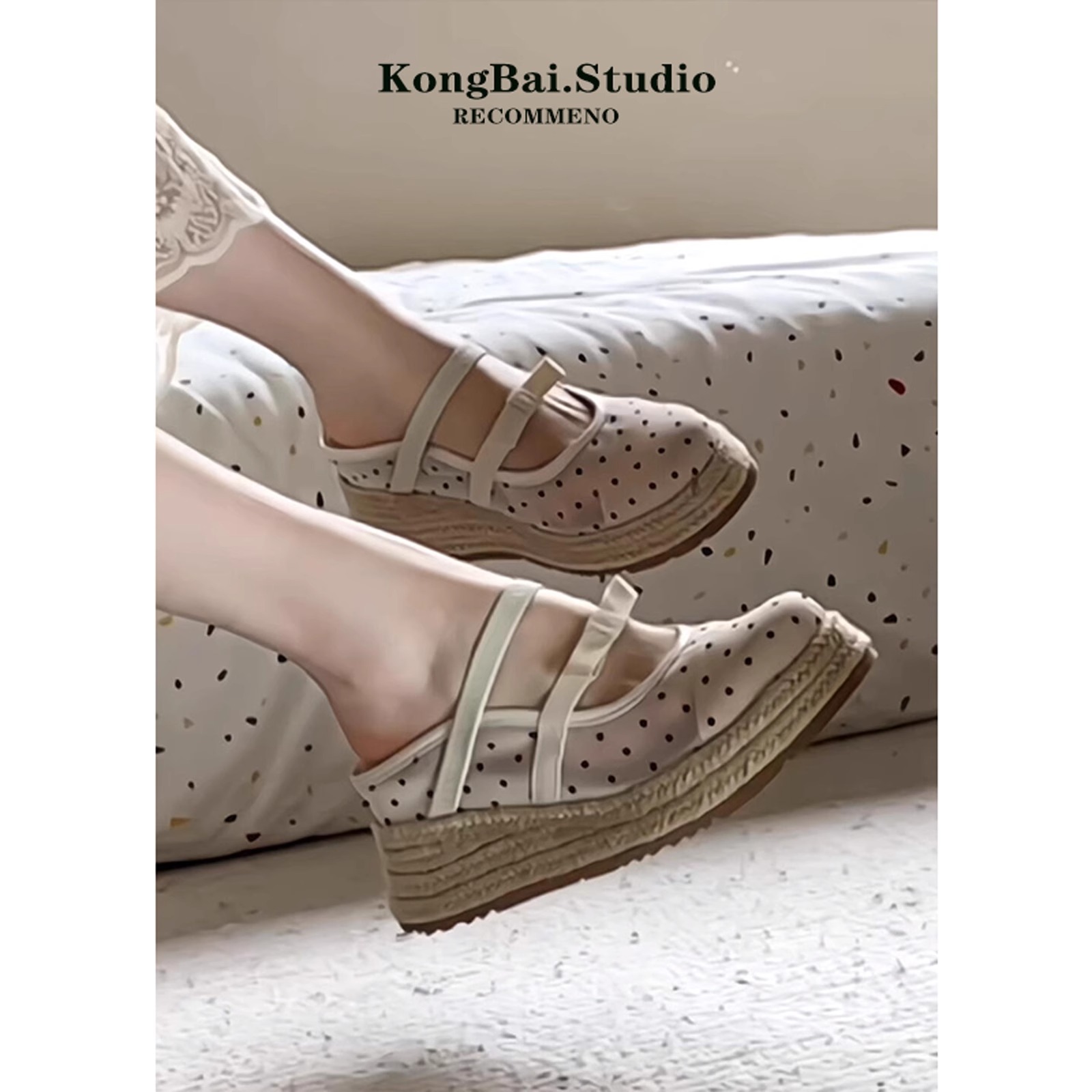小个子坡跟凉鞋女款2025新款夏季外穿休闲包头半拖网纱厚底凉拖鞋