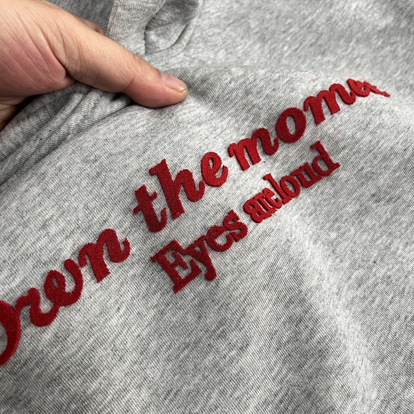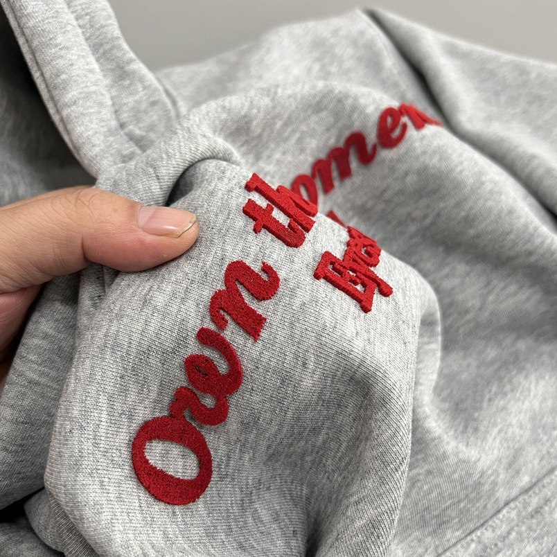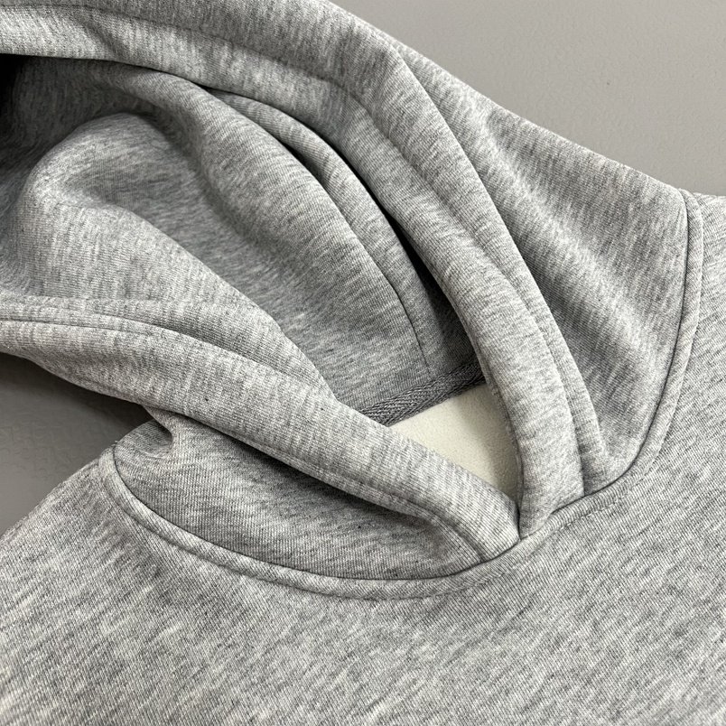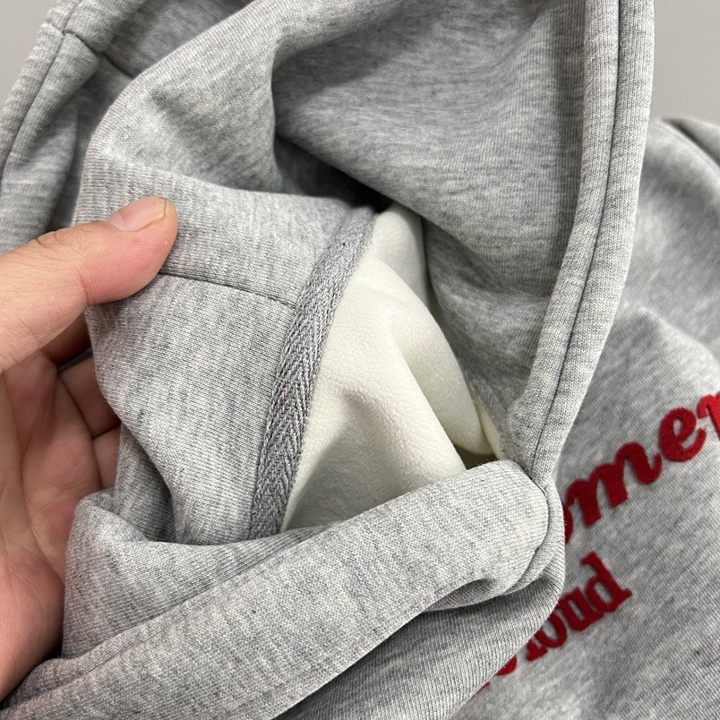 英文牙刷绣花灰色连帽卫衣女士宽松套头松弛感上衣ins风加绒加厚