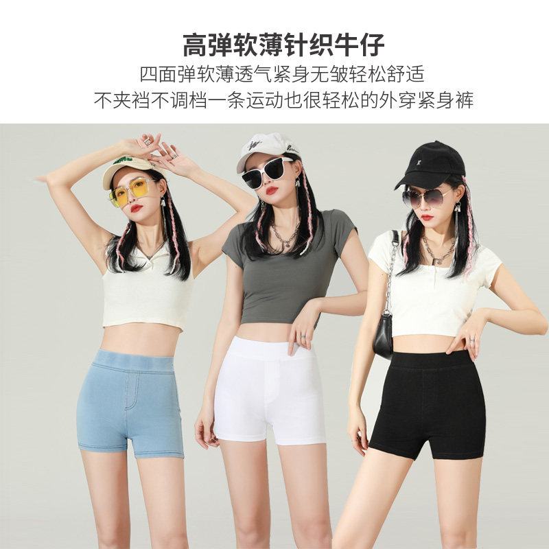 高弹仿牛仔打底短裤女外穿高腰