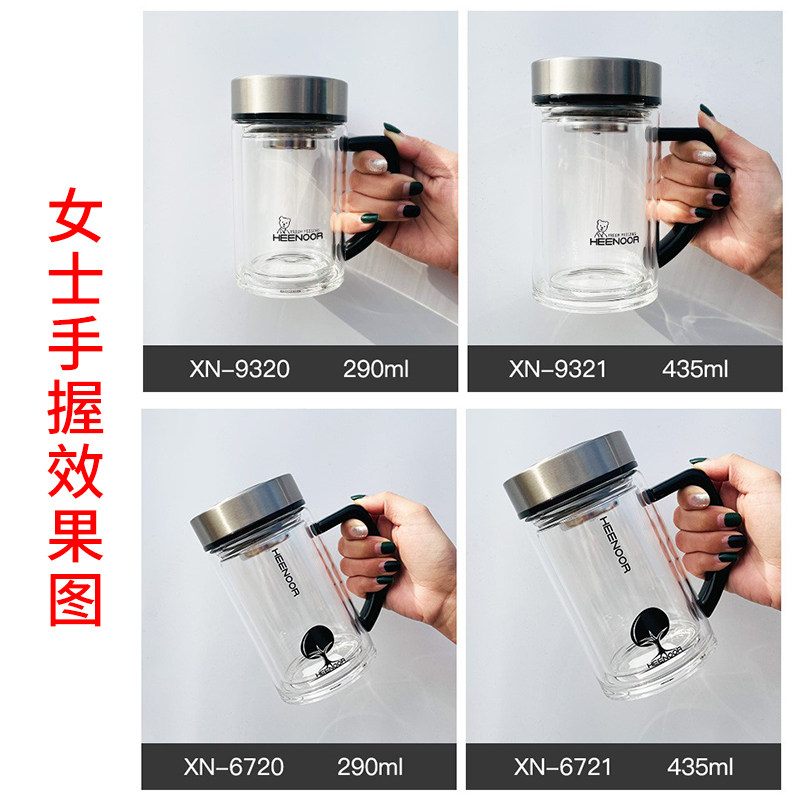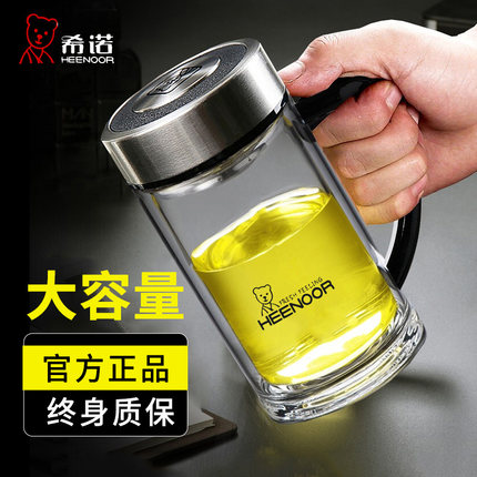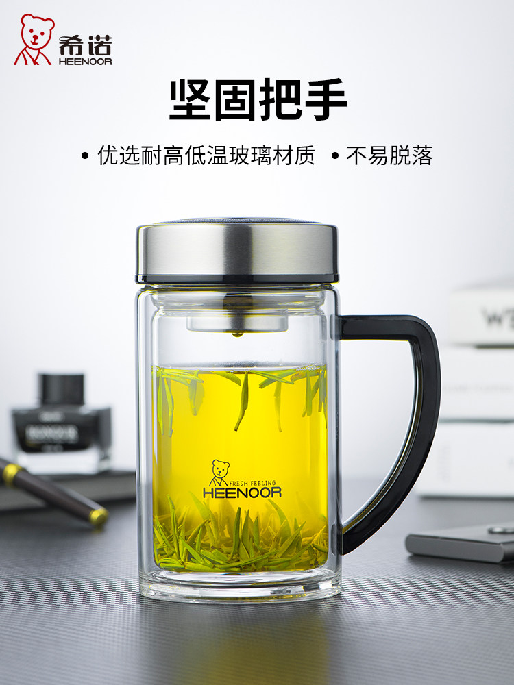 希诺双层玻璃杯带把滤网泡茶