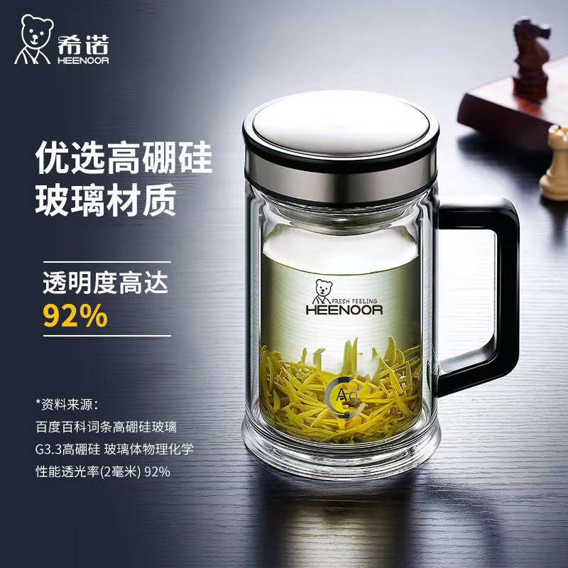 希诺双层高硼硅玻璃带把手办公耐高温便携定制节日礼物纪念水杯