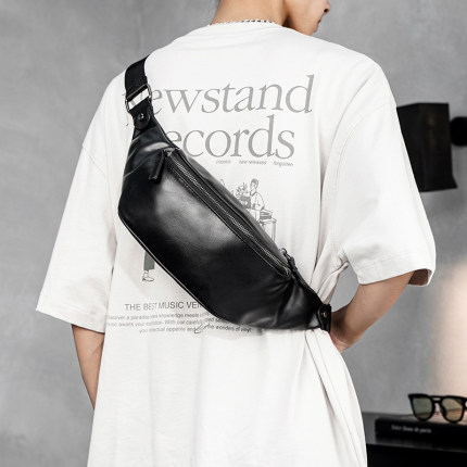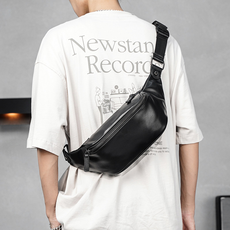 新款斜跨腰包男包户外运动跑步男单肩包斜挎胸包软皮腰带包后背包