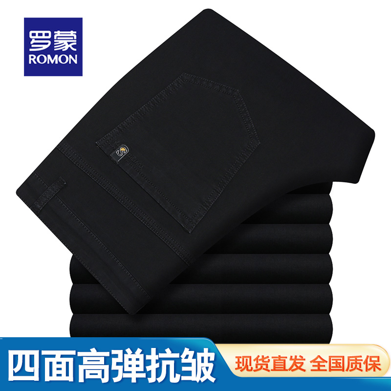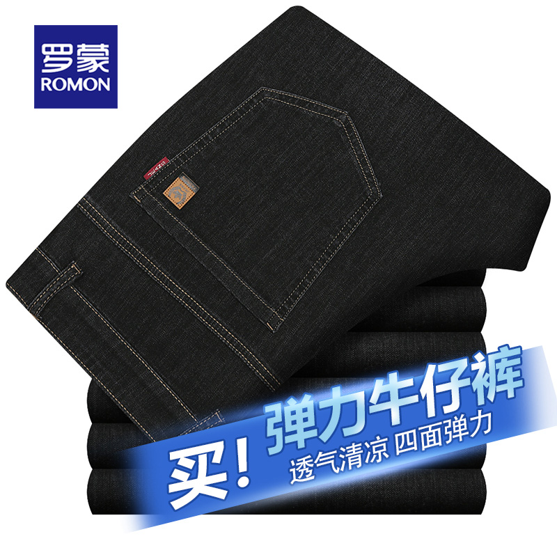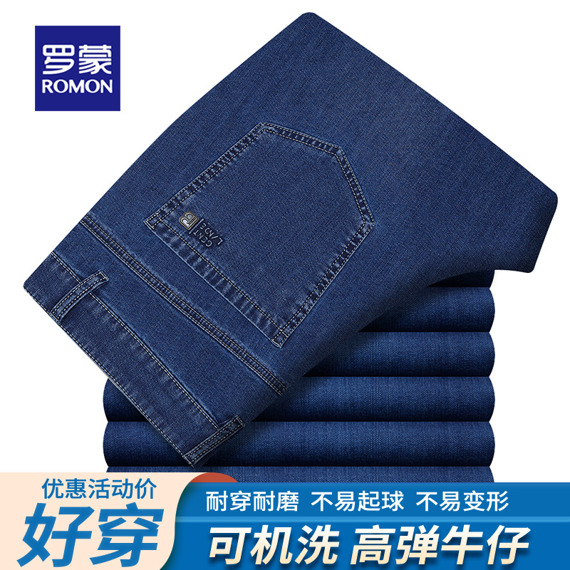 罗蒙休闲牛仔裤夏季薄款男裤中年男士弹力直筒宽松中老年爸爸裤子