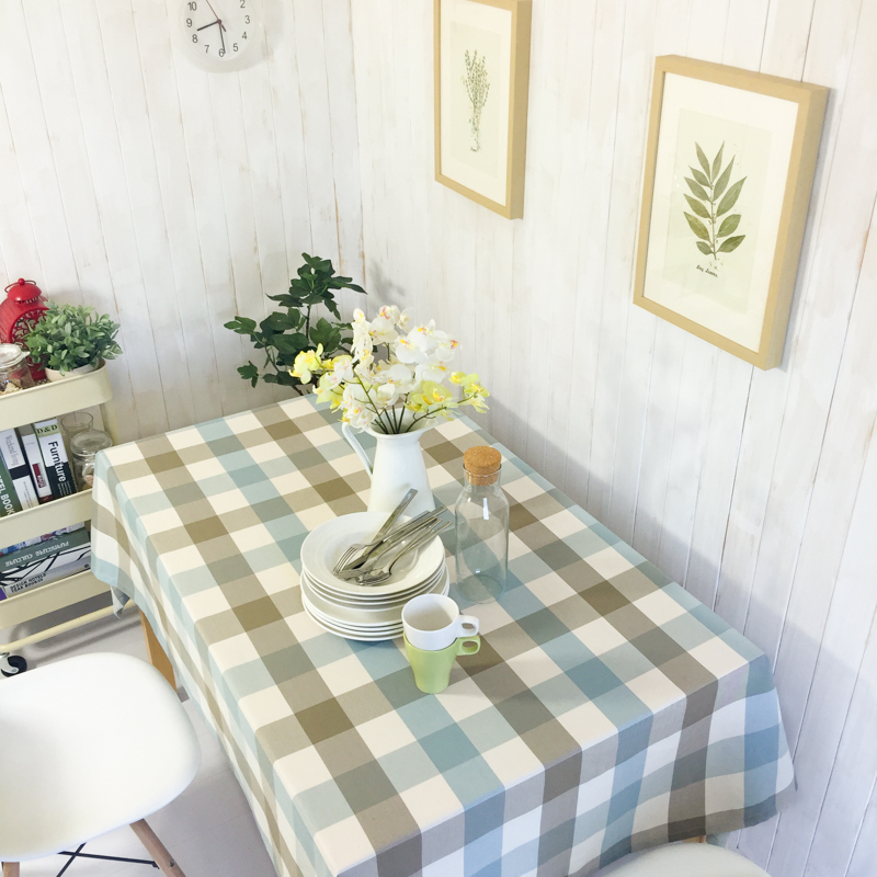 简约北欧文艺防水桌布布艺田园格子长方形餐桌布茶几台布棉麻现代