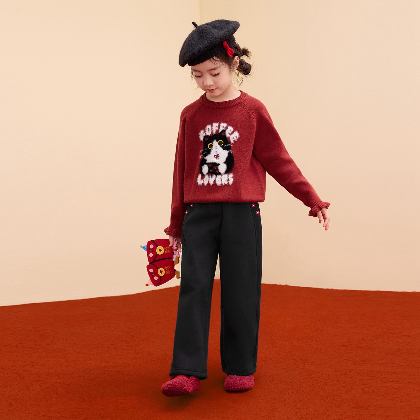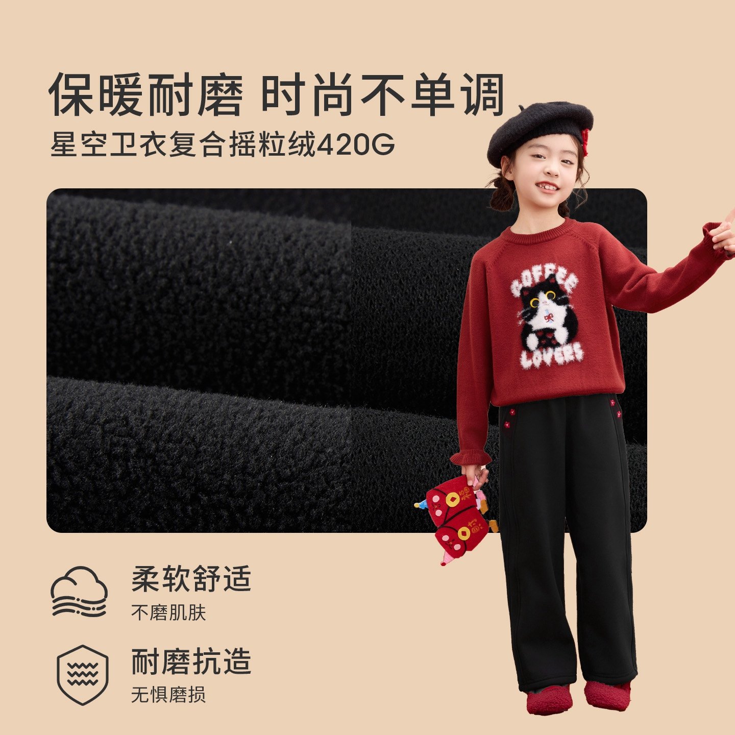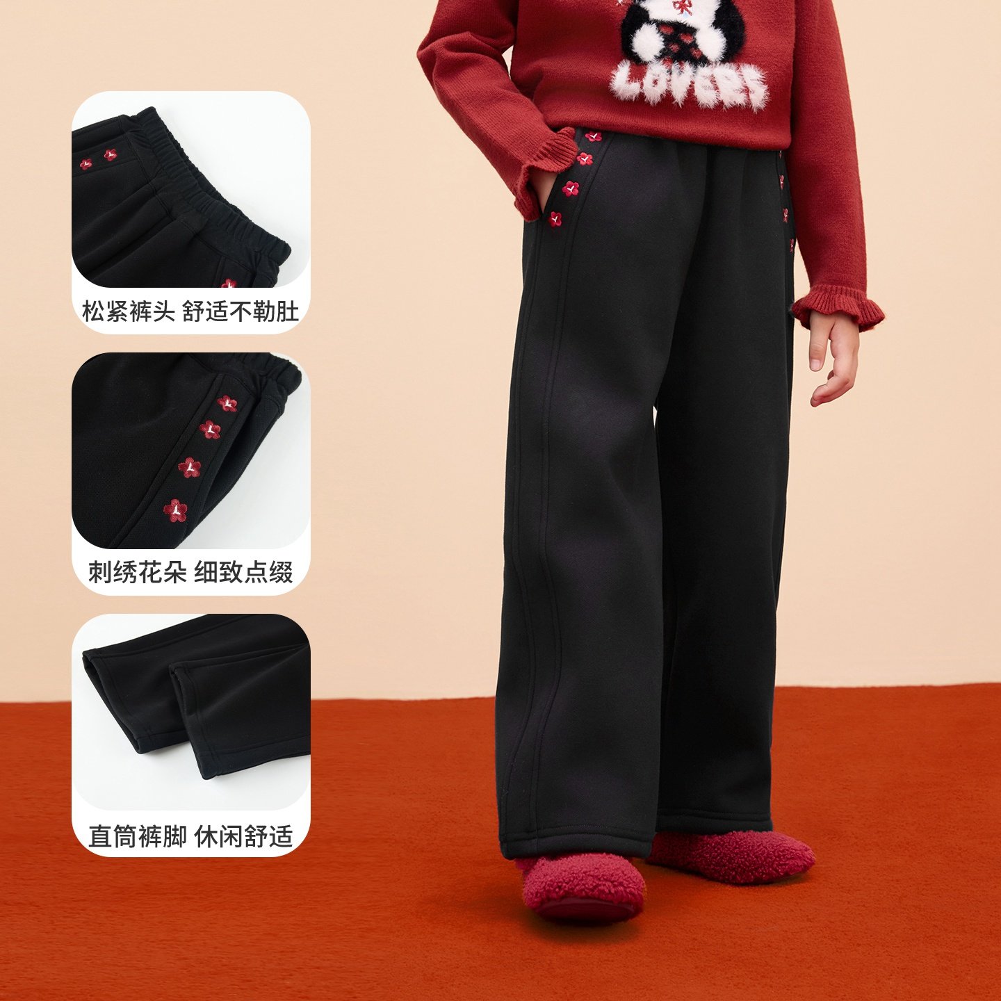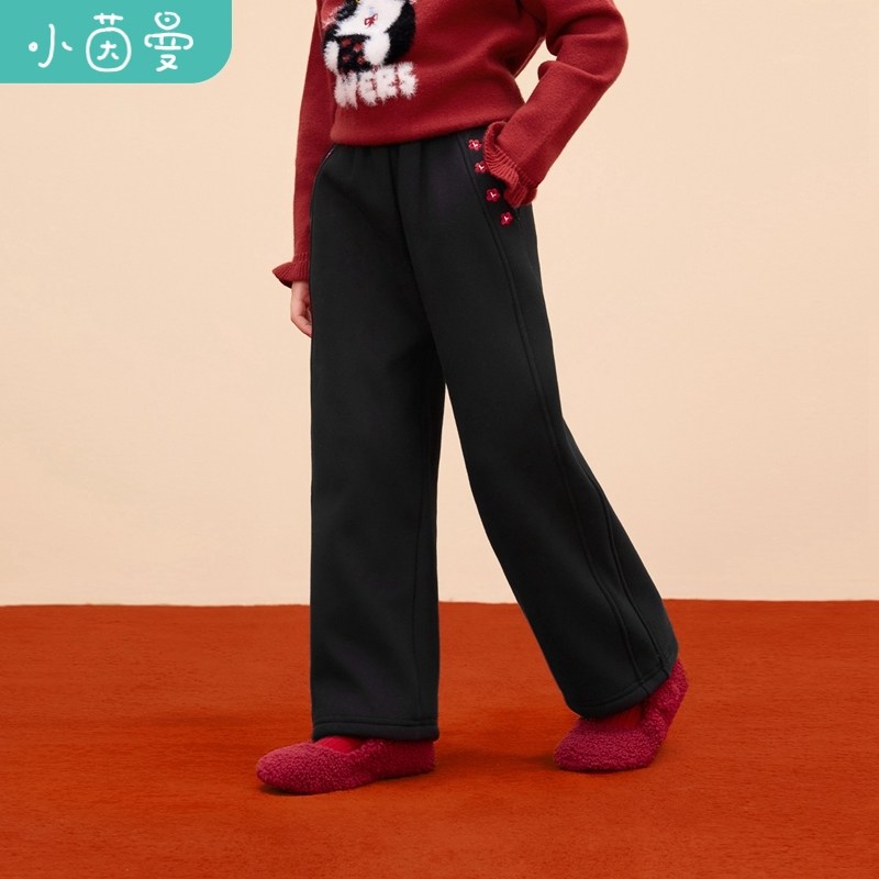 小茵曼童装女童摇粒绒花朵绒绒裤25冬季中大童加厚保暖阔腿裤年服