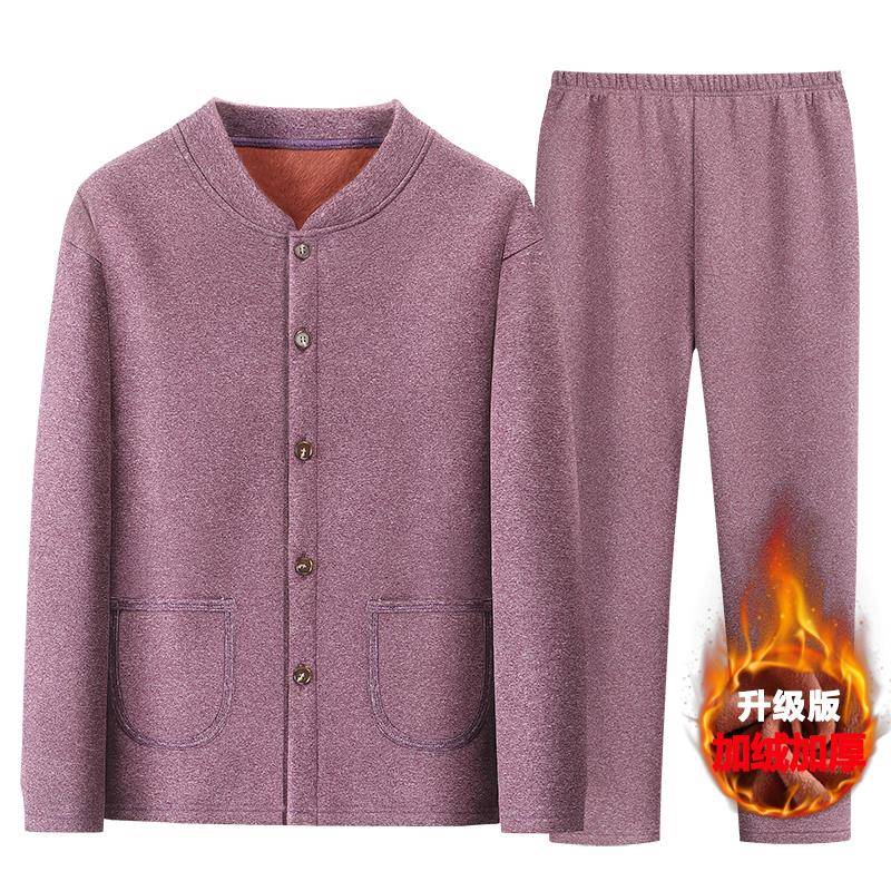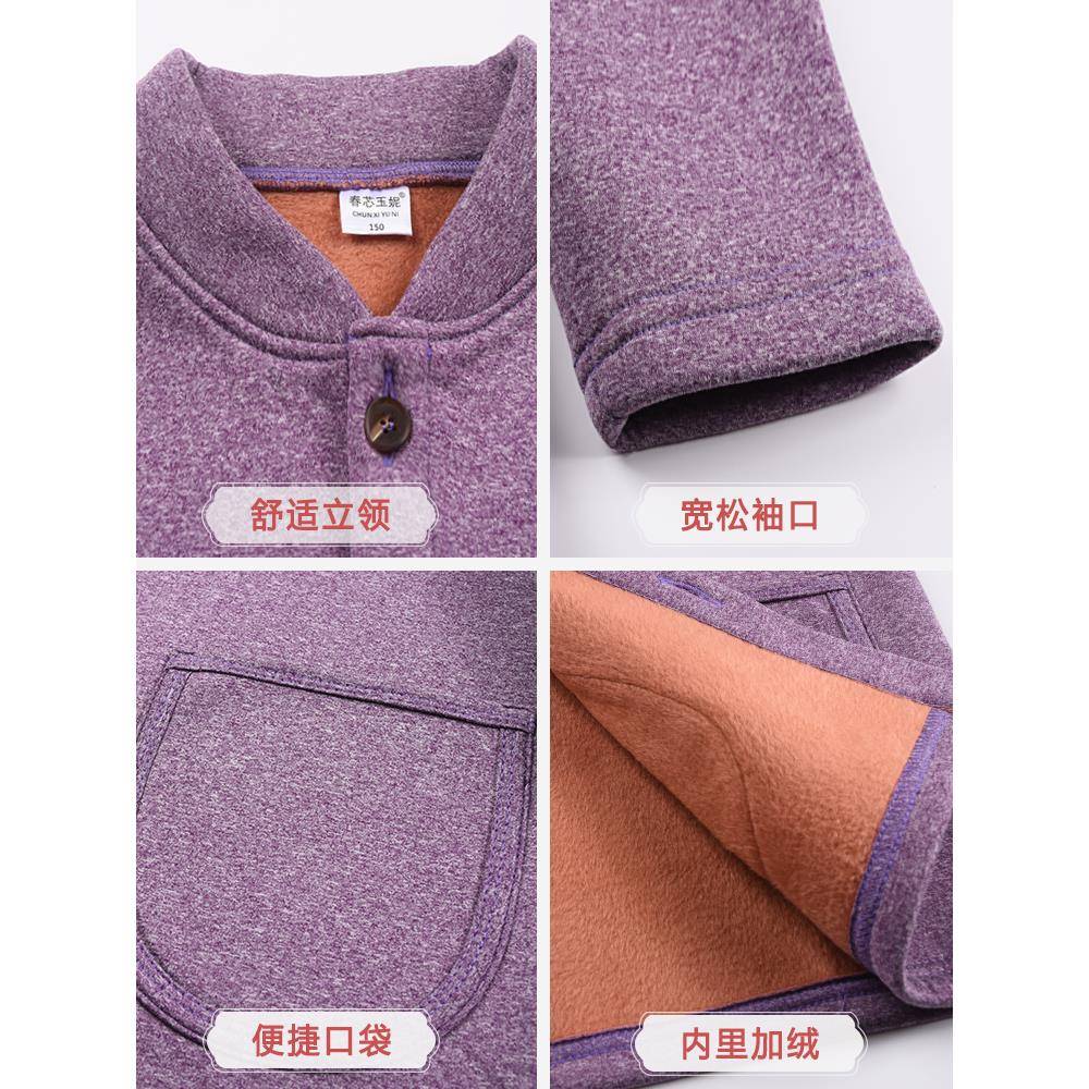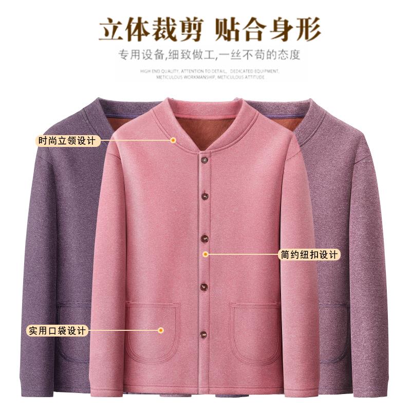 妈妈装秋冬保暖内衣套装女中老年人大码纯色加绒加厚外套长袖棉衣
