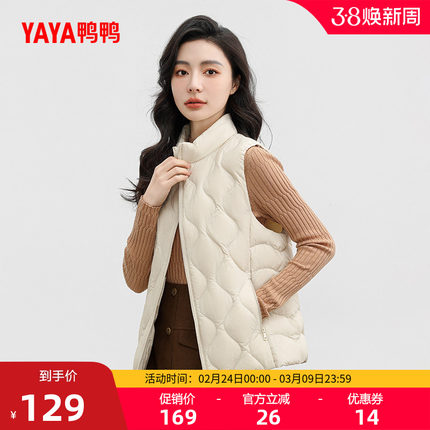 鸭鸭羽绒服马甲女士2025季冬季轻薄立领时尚短款保暖鸭绒马夹外套